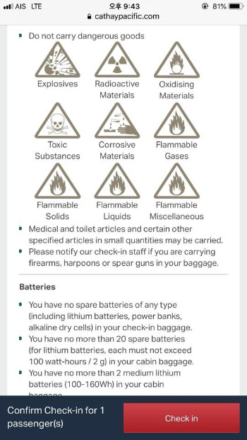 항공권 관련 메일을 볼 때마다 혼자 빵빵 터지는 부분이 있는데 바로 기내에 들고 탈 수 없는 아이템에 대한 설명이었다.