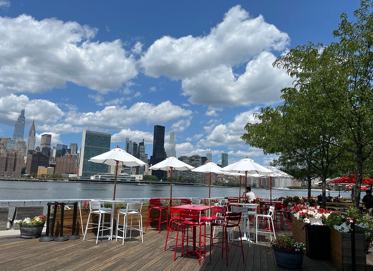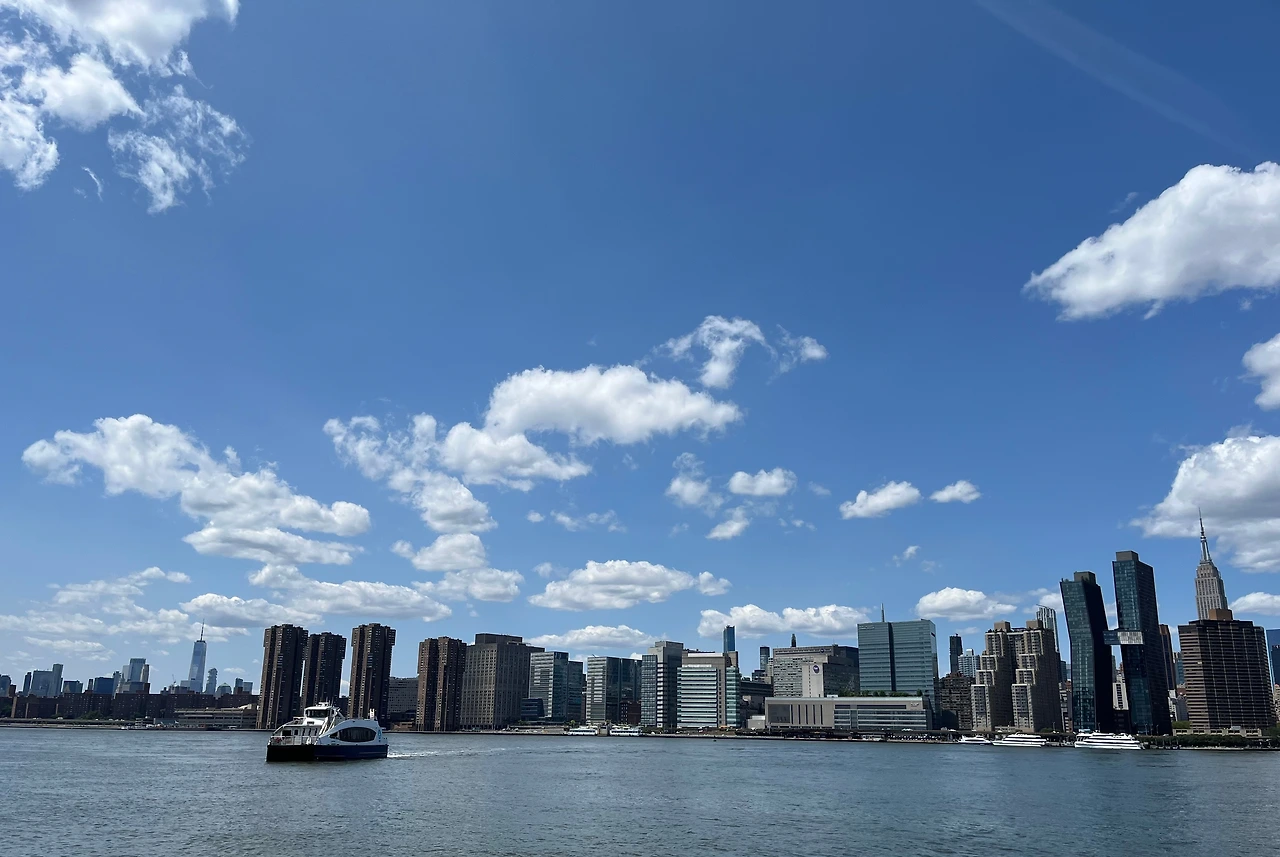 시시각각 변하는 구름과 엠파이어 스테이트 빌딩, 그리고 맨해튼과 롱아일랜드 시티 사이를 유유히 건너 다니는 페리의 모습이 잘 어울렸다.