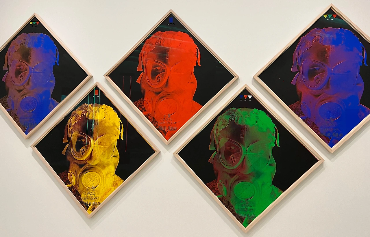 <Take Cover 1,2,3,4,5>에서 그는 불길한 느낌을 주는 마스크와 공습 사이렌 경보시스템의 색 ⎯ 노란색은 경계경보, 파란색은 공습경보, 초록색은 해제경보 ⎯ 을 반복적으로 나타냄으로써 환경의 변화에 대해 환기시키려 했다.