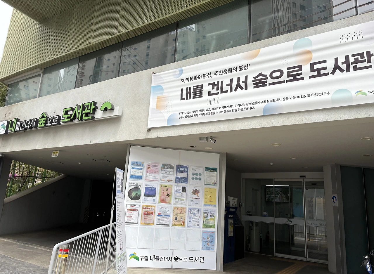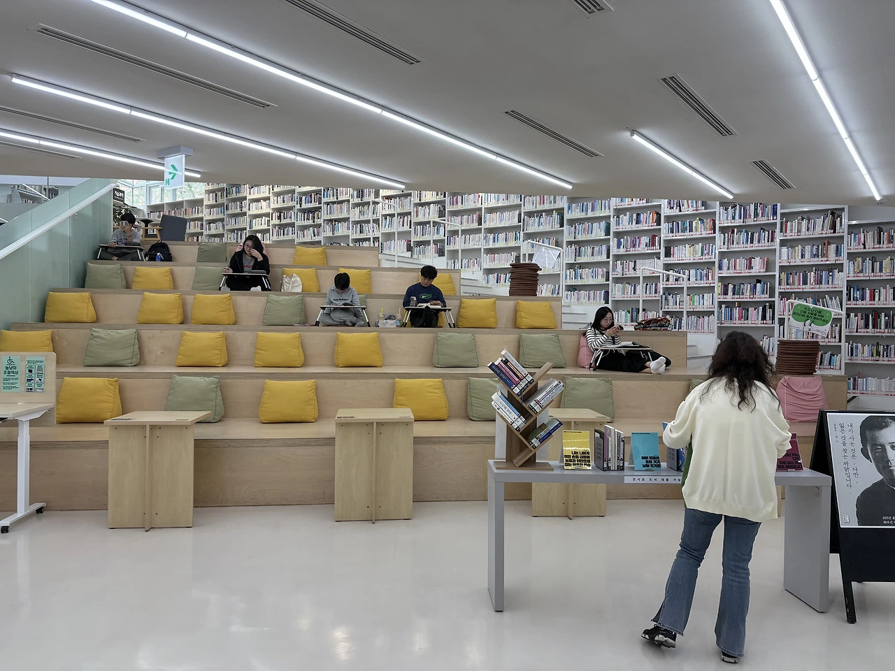 서울에서 머물던 숙소 근처 공원을 산책하다가 주변 풍경과 잘 어우러진 도서관을 만났다.