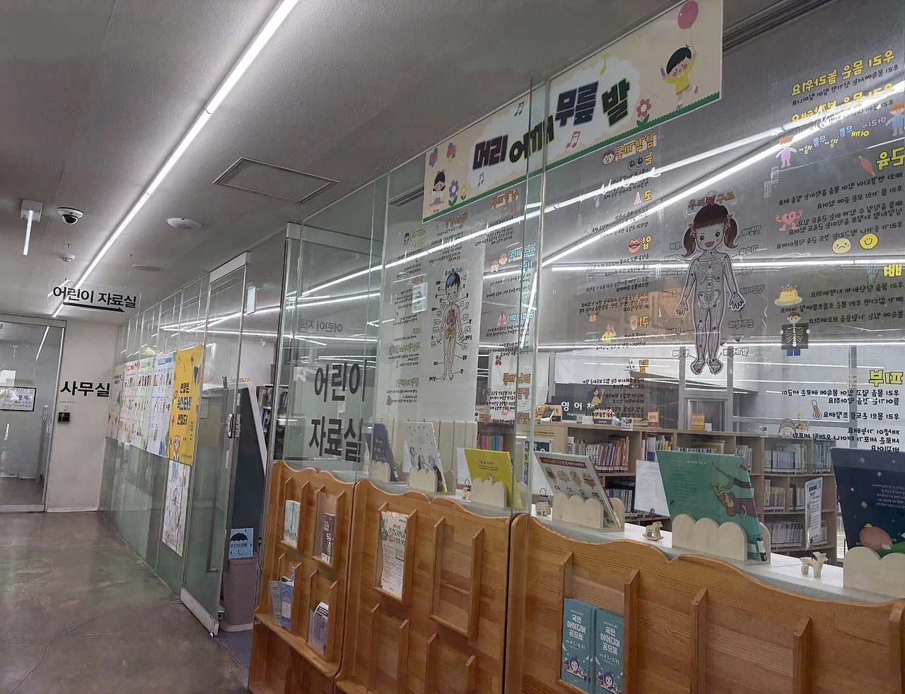 지상층인 맨 아래층에 들어서자마자 어린이 자료실이 보였다.