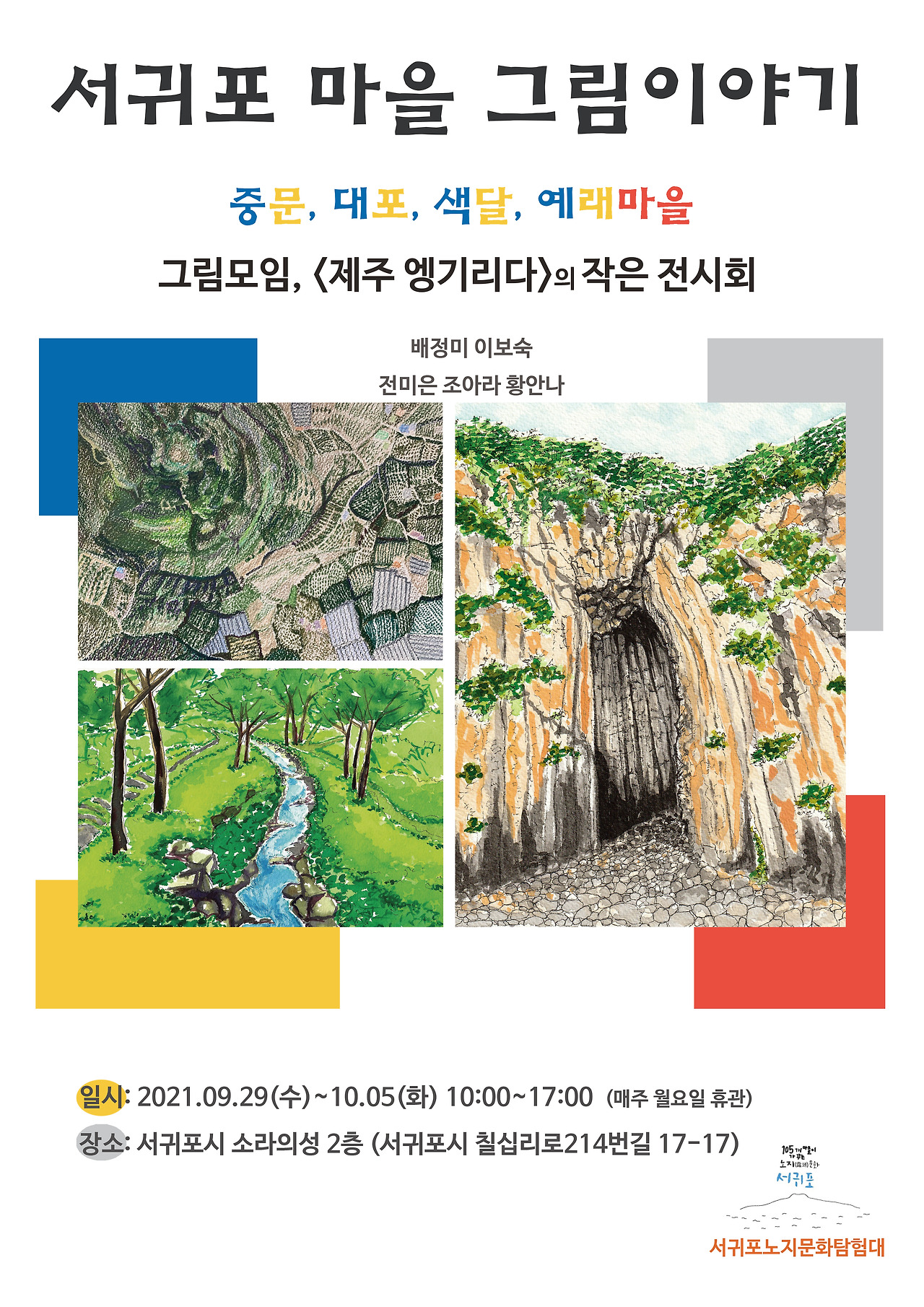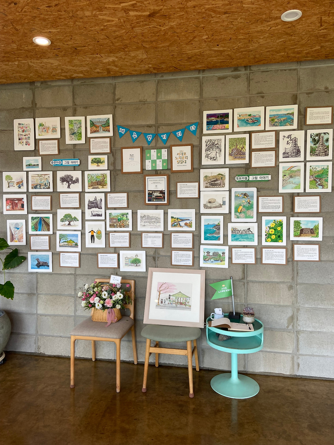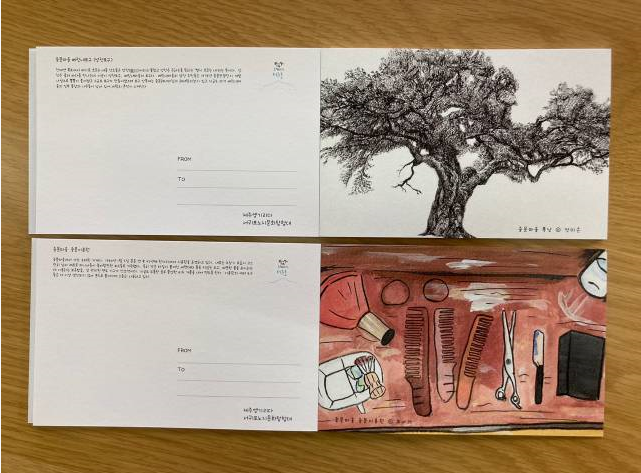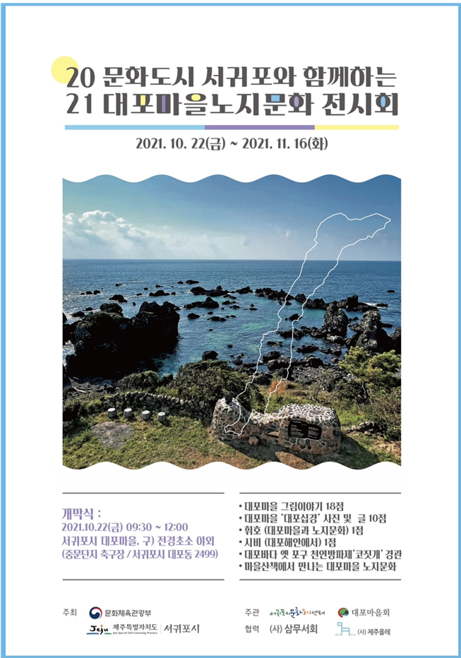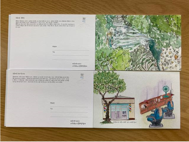 10주간의 작업을 통해 처음 계획했던 일곱 마을은 중문, 색달, 대포, 예래 네 개 마을로 줄여졌고, 이후 작품을 스캔하고 엽서 북 제작과 전시회를 준비하는 시간으로 이어졌다. 이 과정에서 감사하게도 ‘에리두’와 ‘서부도서관’에 이어 ‘소라의 성’에서까지 모두 3번의 전시회를 열 수 있었고, 올레길 축제와 더불어 개최된 ‘대포마을 노지문화 전시회’에 초대되어 지역예술가로 소개되기도 하였다. 그리고 ‘노지문화탐험대’ 활동 ‘우수상’을 받으며 그간의 여정을 마무리했다.