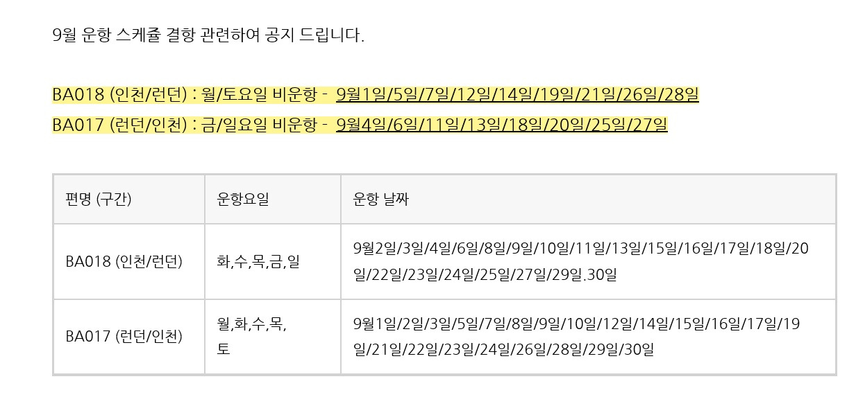 내가 예약해 둔 9월 28일 자 영국항공이 결항이 되면서 나는 100% 환불을 받게 됐다. 이 연락을 받자마자 내 어깨는 30만 원어치 짐이 덜어진 기분이었다.