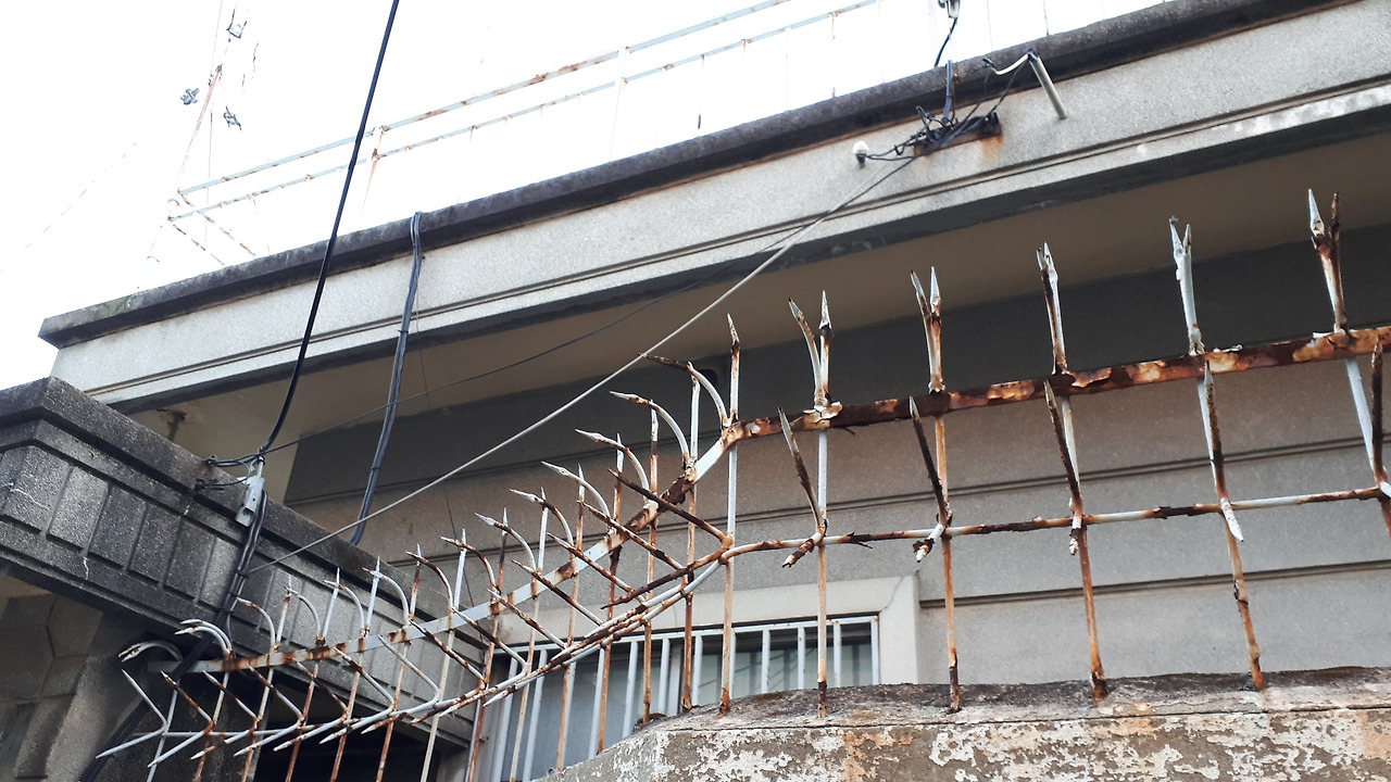 녹이 잔뜩 낀 담장이다. 찔리면 파상풍 걸리겠네