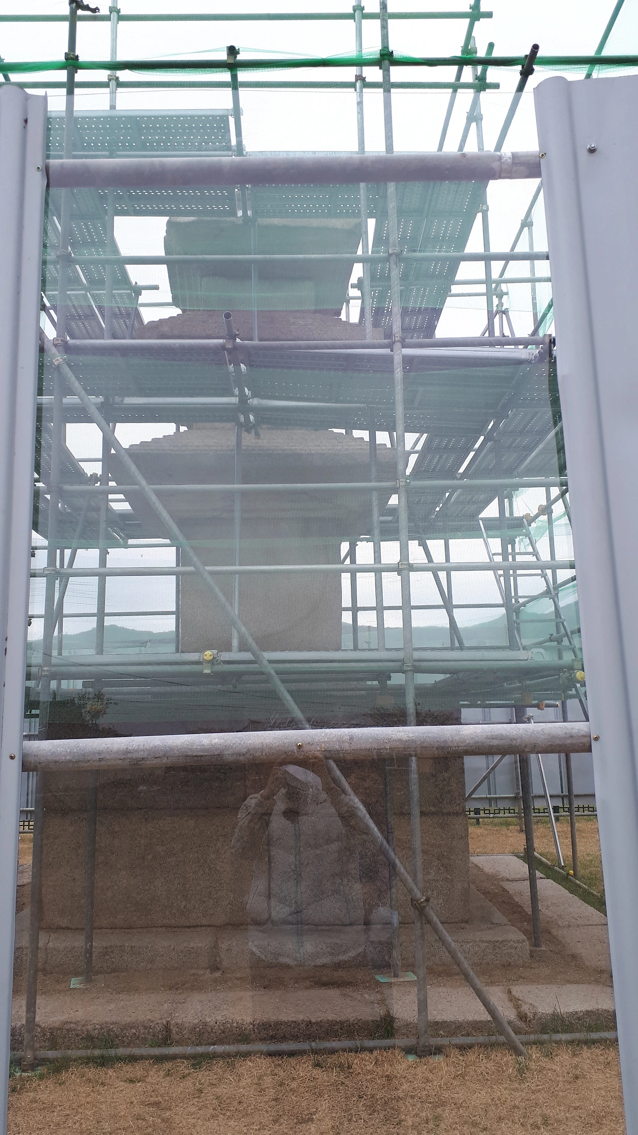 반면 서탑은 2층으로 된 받침돌 위에 3층의 몸돌을 올렸고 위층 받침돌 4면에 2구씩 8종의 신을 새겼다. 공사 중이라 가까이에서 살펴보지 못한 게 안타까웠다.