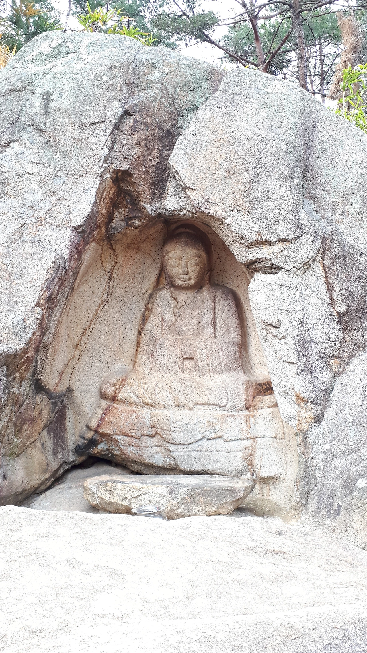 '전화하면서 내려가다가 굴러 떨어지면 나의 마지막 통화는 황 부장님으로 찍혀 있겠지?' 이런 끔찍한 생각이 문득 들자 나는 하산을 멈추고 마애석불님 앞에 있는 바위에 걸터앉아서 통화를 했다. 통일신라시대에 마애석불을 조각한 사람들은 아주아주 먼 미래에 한 여자가 이 곳까지 기어올라와서 핸드폰이라는 것을 들고 다른 지역에 있는 사람과 통화를 할 거라는 것을 상상도 못 했을 거다.