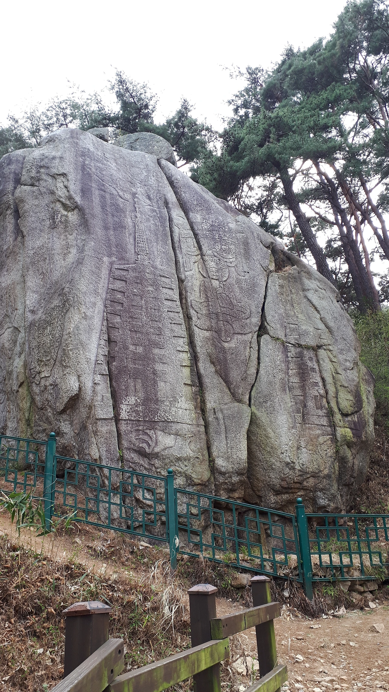얼마나 더 가야 마애석불님이 나올지 정확한 이정표도 없는데 중간중간 희미하게 한자가 새겨진 바위가 눈에 보였다. 이 곳 자체가 엄청난 유적지라는 큰 기대와 인내심을 가지고 마애석불을 찾아 기어올라갔다.