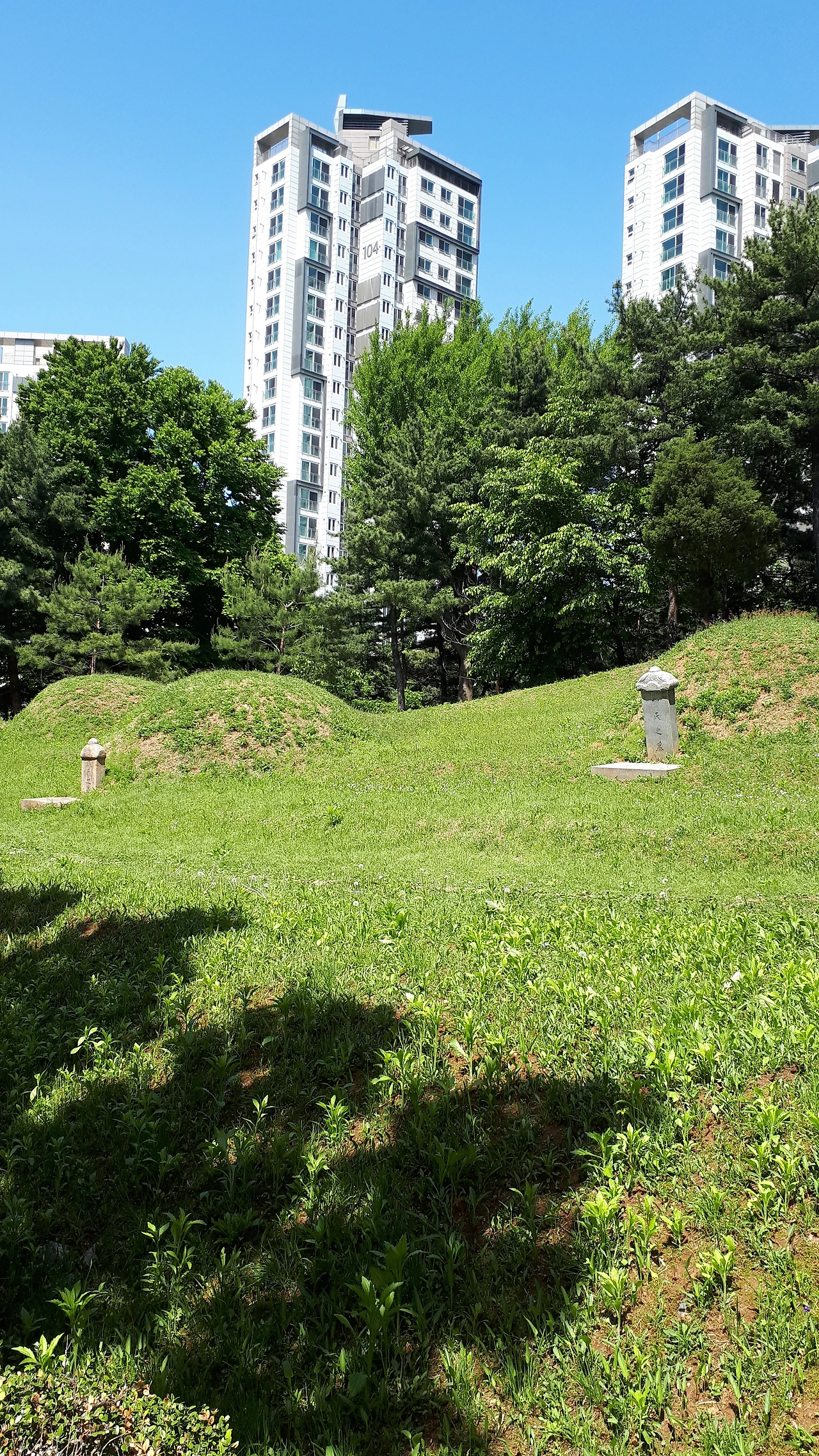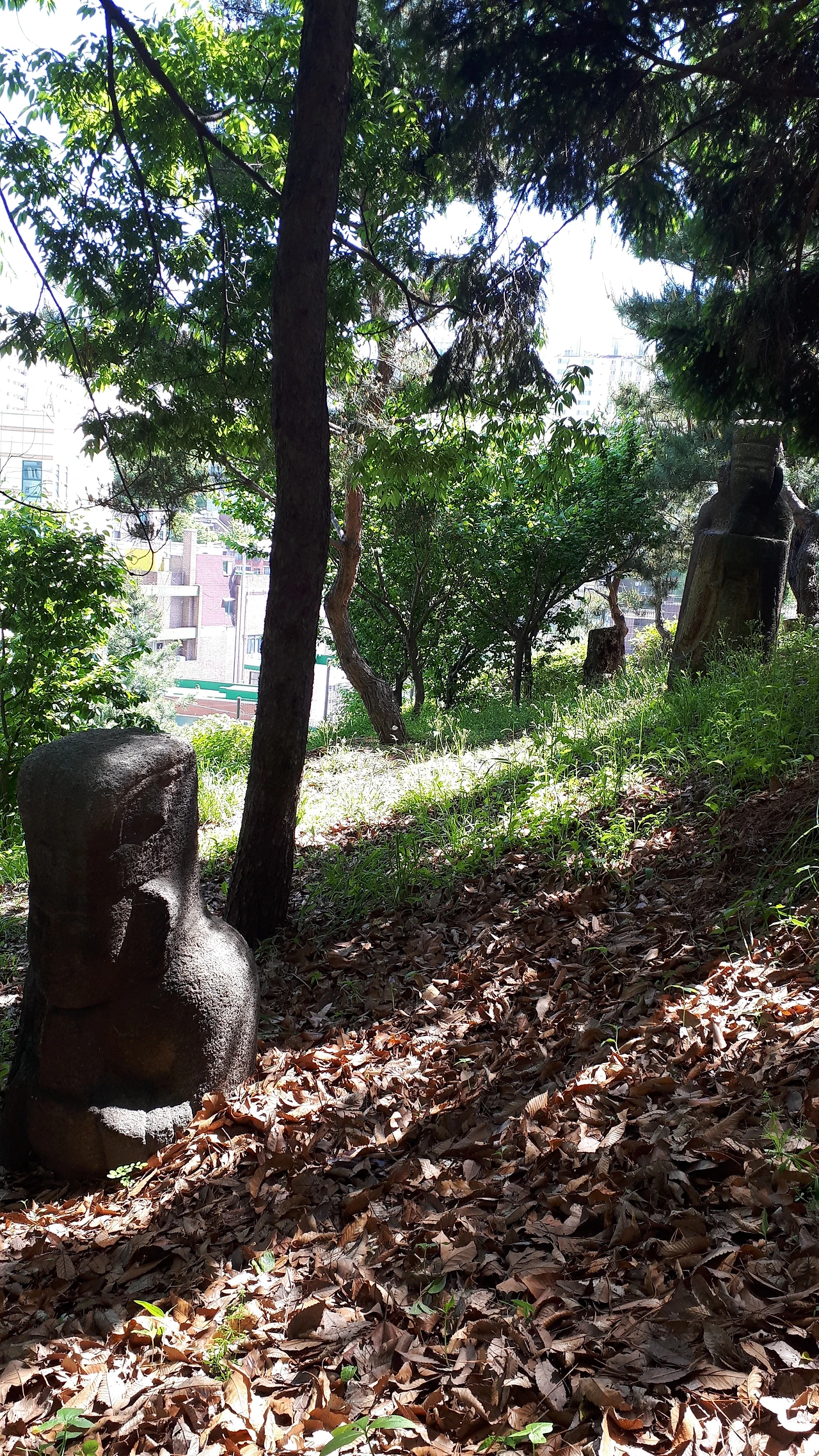 사육신묘를 둘러보던 중 뜬금없이 흙에 파묻힌 석상을 발견했다! 한 석상은 허리까지 땅속에 묻혀있었고 뒤의 석상은 그나마 발목만 묻혀있었다. 석상이 답답할까봐 흙을 파주고 싶었다