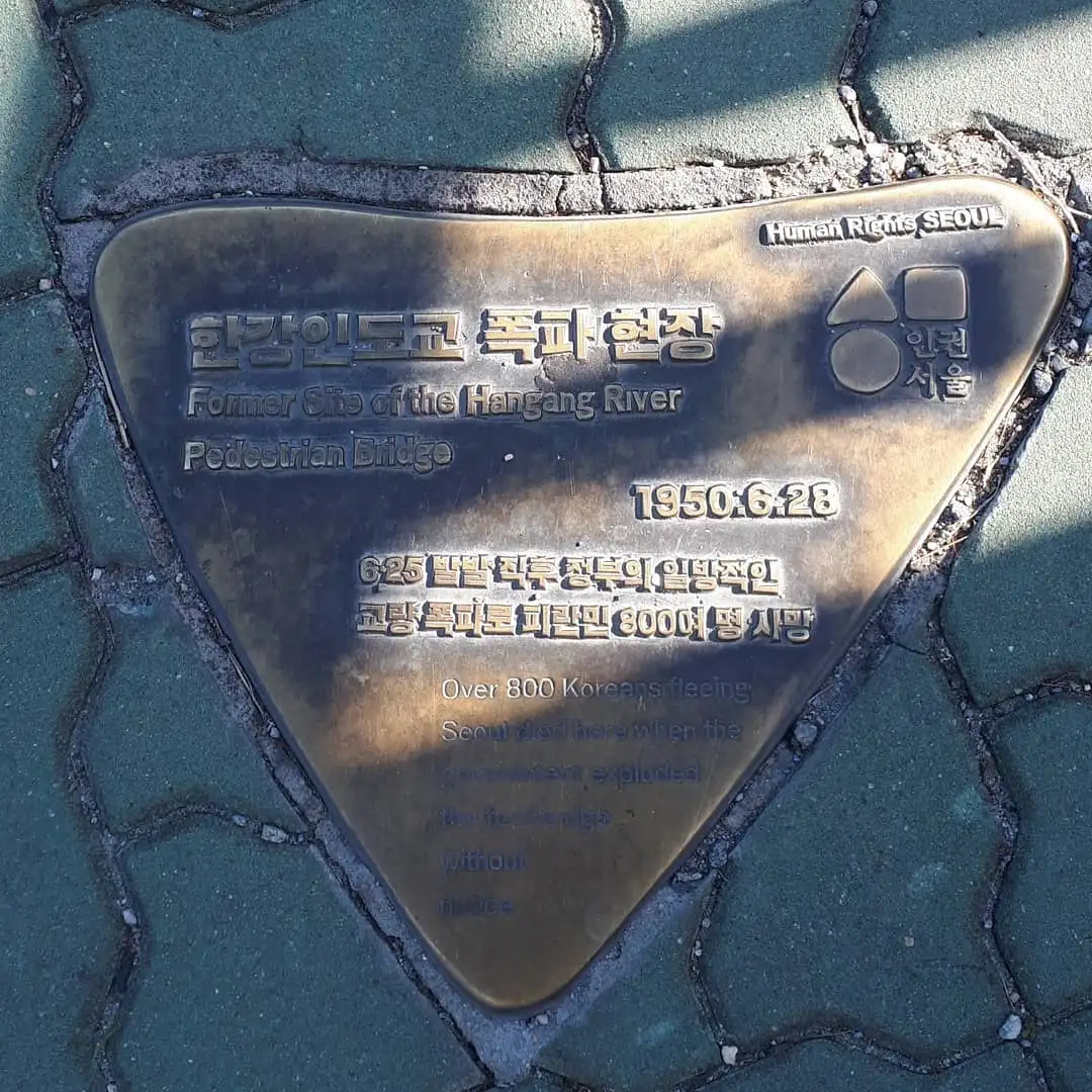 한국전쟁 발발 직후 국군은 한강교량을 폭파해 북한군의 남하를 저지했다. 하지만 당시 다리를 건너던 수많은 피난민들의 희생이 또한 있었다. 그 때 대략 900명이 돌아가셨다고 한다