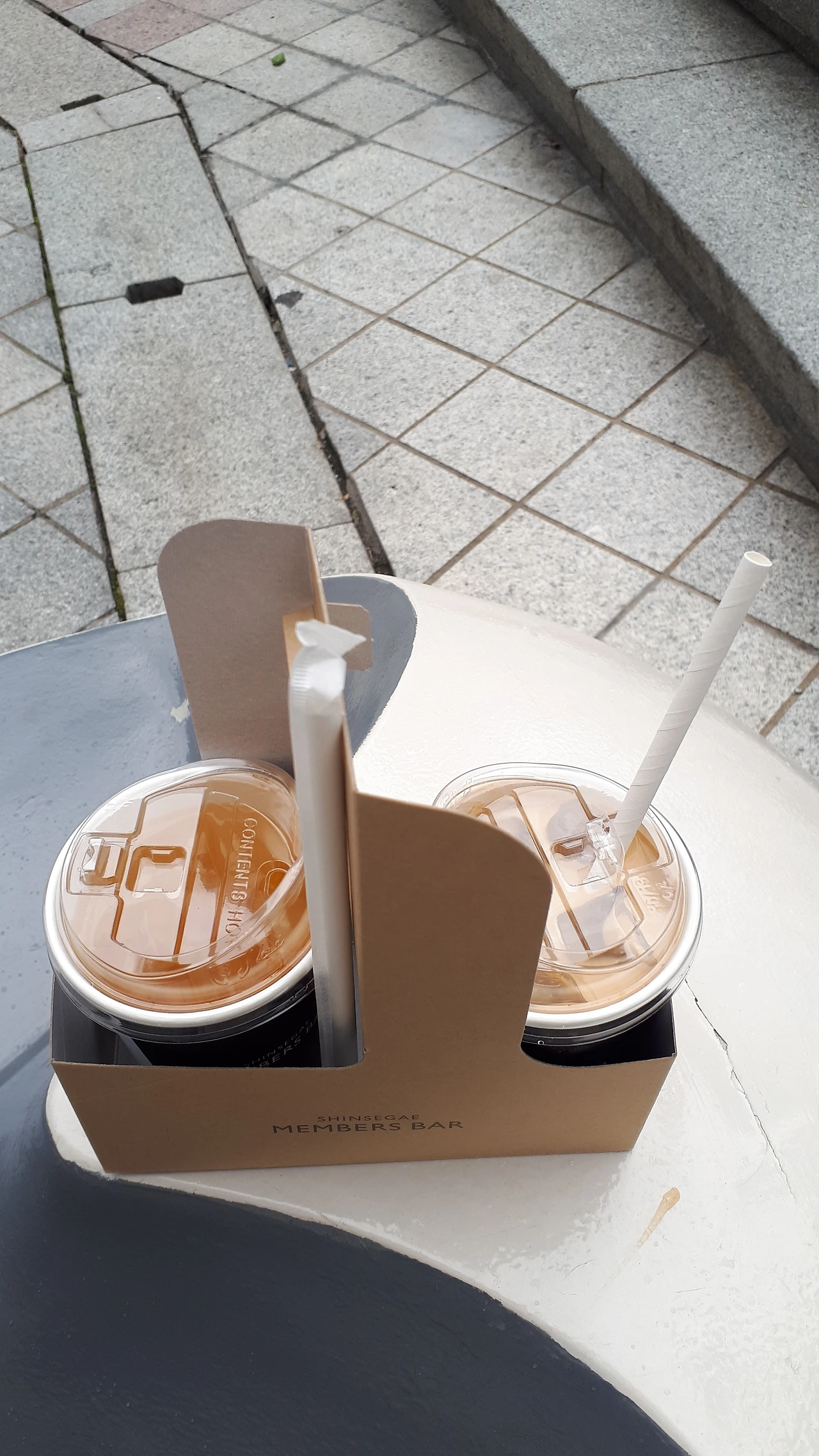 여유 있게 평일을 즐기기 위해서 약속한 시간보다 두 시간도 더 전에 백화점 라운지에 가서 음료를 받아왔다. 휴일일 때는 커피를 안 마시려고 정말 노력을 해보지만 카페인에 이미 중독된 건지 나의 하루는 커피를 마신 전 후로 시작되는 기분이다. 코로나로 백화점 내에서 음료를 마시지 못했고 테이크아웃만 가능했다. 혼자였지만 이래 봐도 나는 정용진 회장님 백화점의 VIP라 한 사람당 두 잔씩 공짜 음료를 받아올 수 있어서 샷이 추가된 아이스라테와 아이스 녹차를 받아왔다.