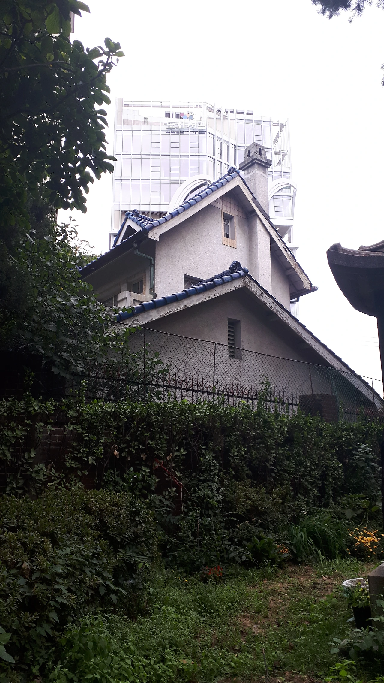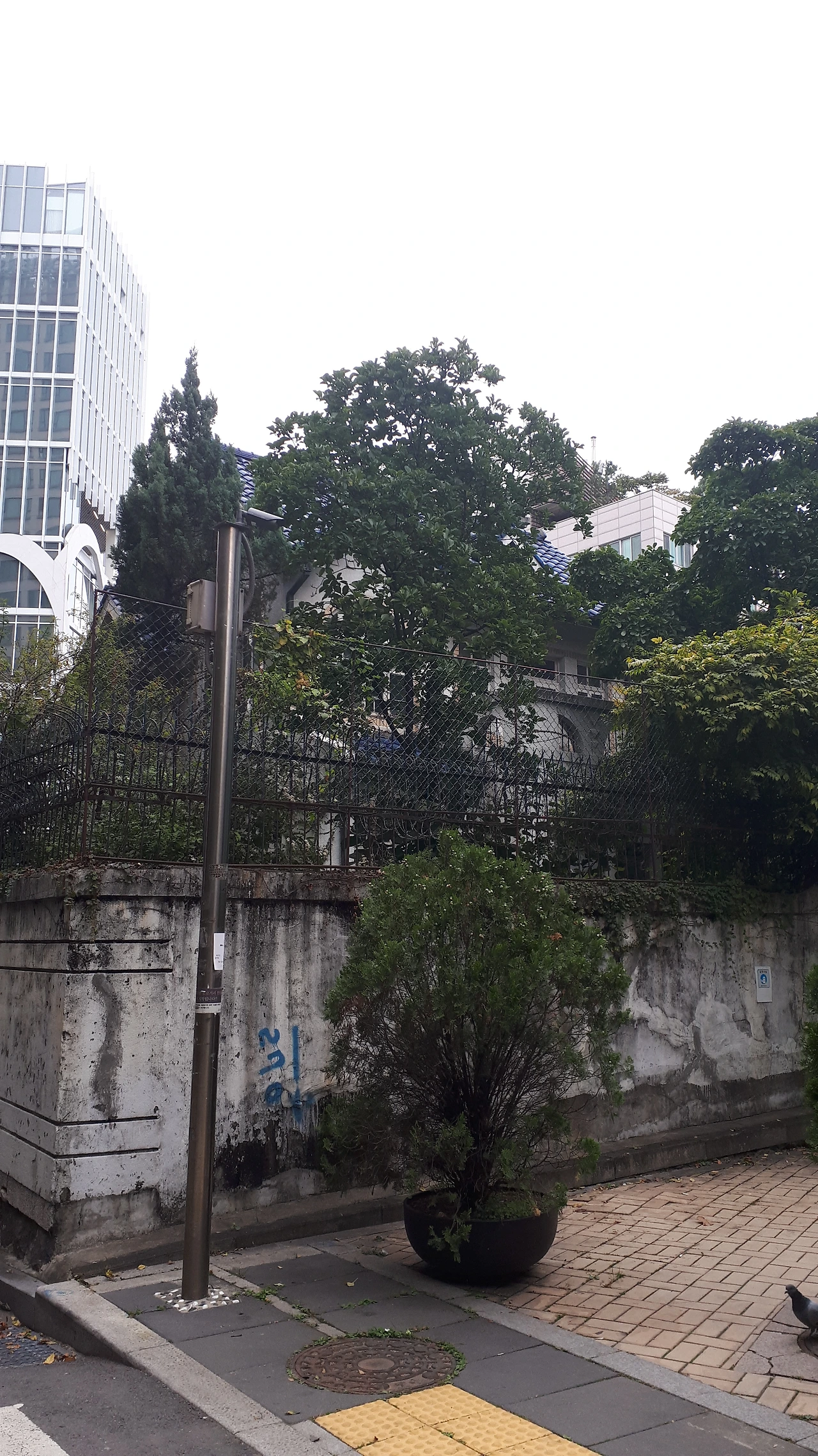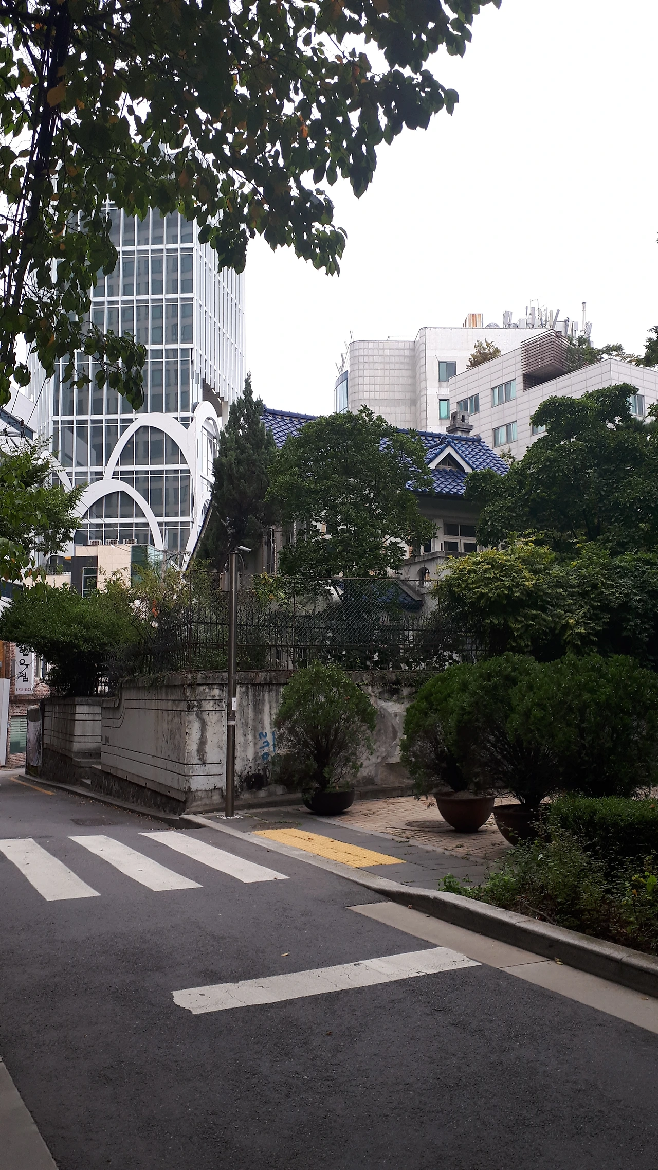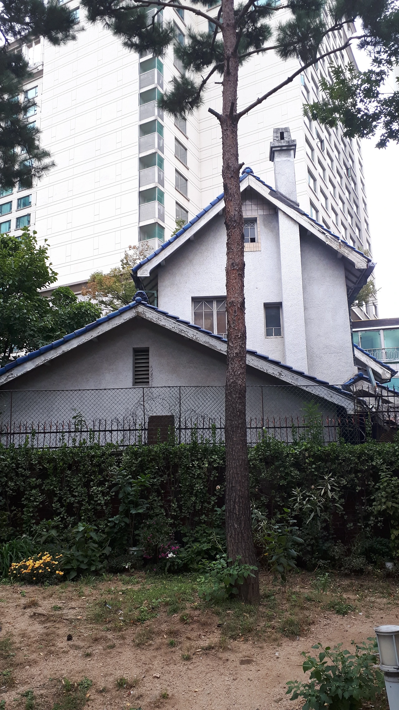 부동산에서 나와서 걷다 보니 파란 기와집에 도착했다.