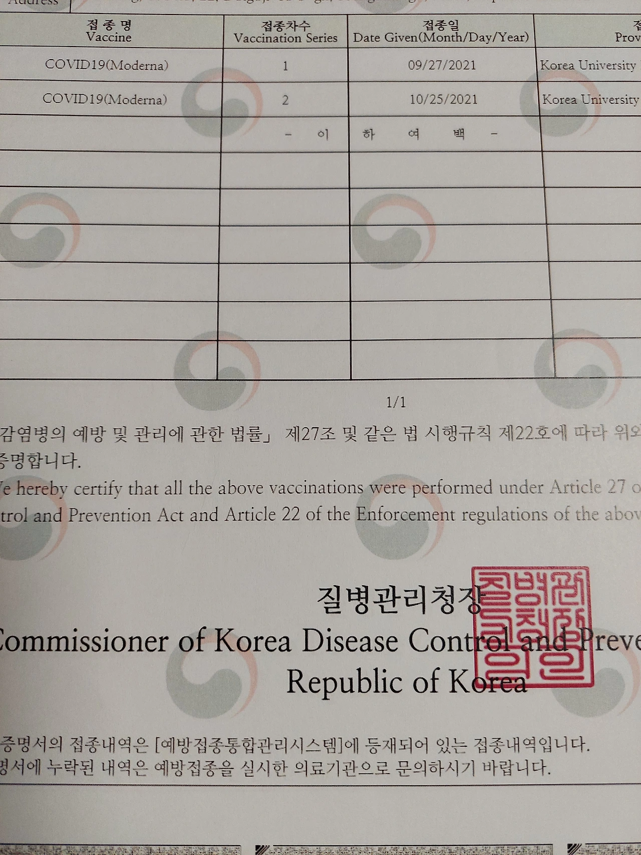 인천공항에서 탑승을 하기 위해서는 영문백신접종증명서 (Certificate of Immunization)가 필요했고, 출국하기 48시간 전에 PCR 검사를 받아서 음성이라는 영문 확인서도 받아야 했다.