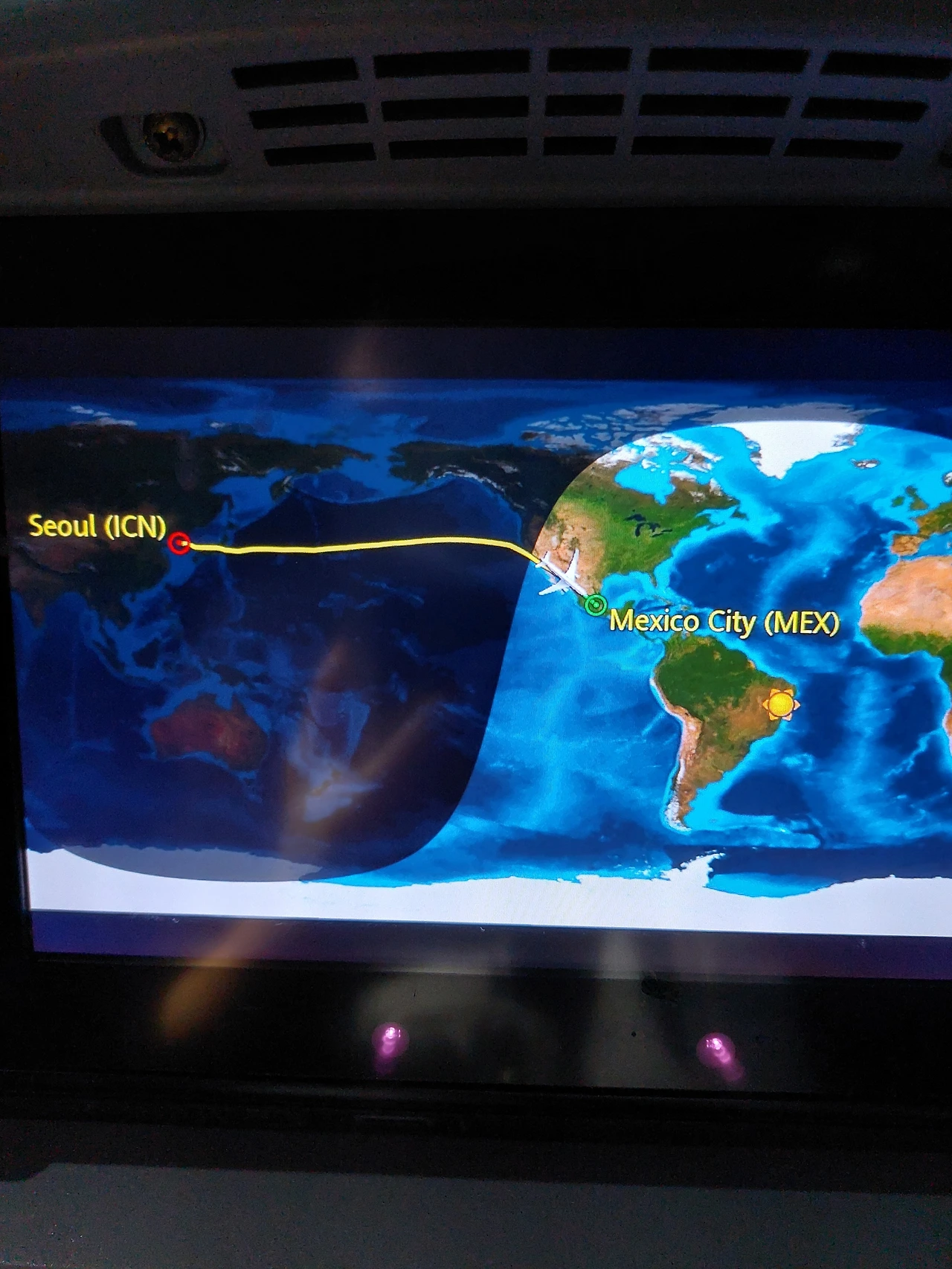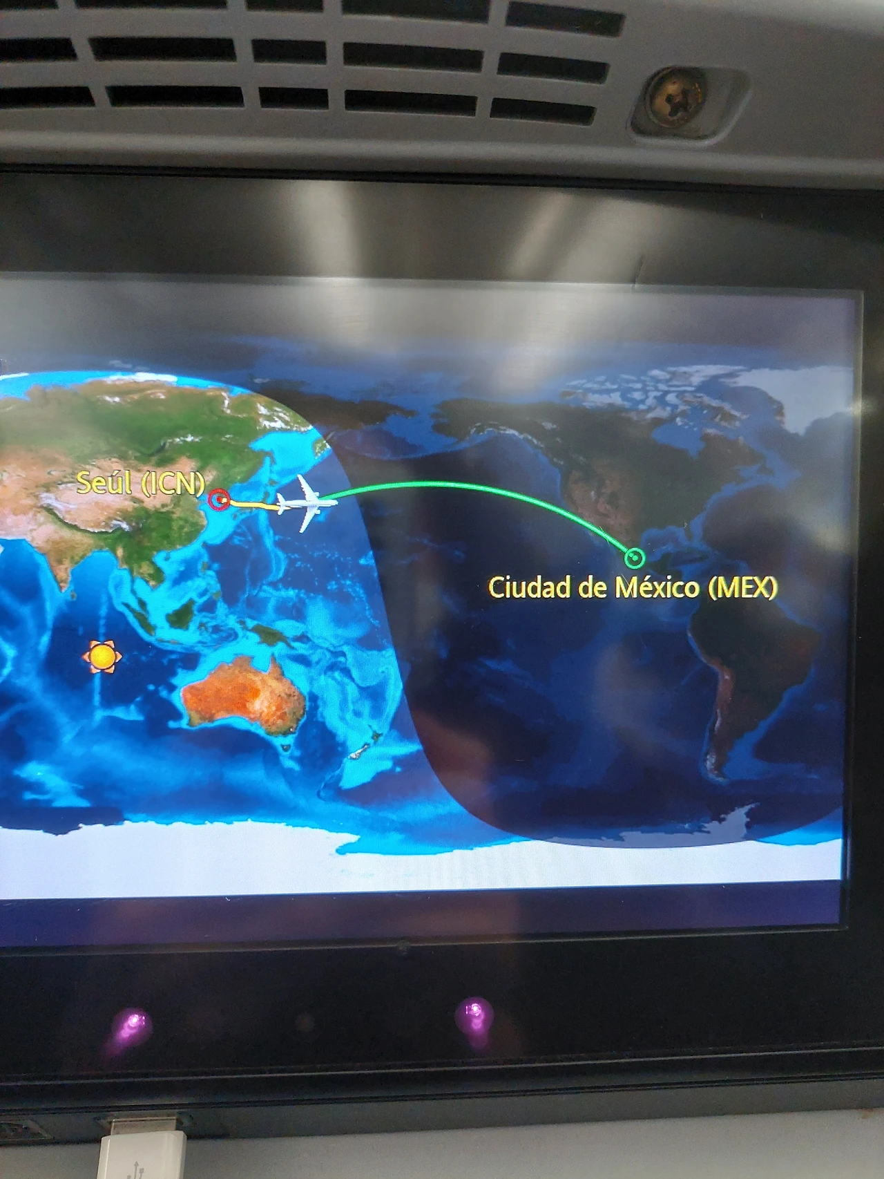 아직도 비행기를 타면 이렇게 낮과 밤이 바뀌는 경계가 있다는게 신기하다. 광활한 태평양 위를 날고 날고 또 날아야 겨우 도착하는 곳, 멕시코다