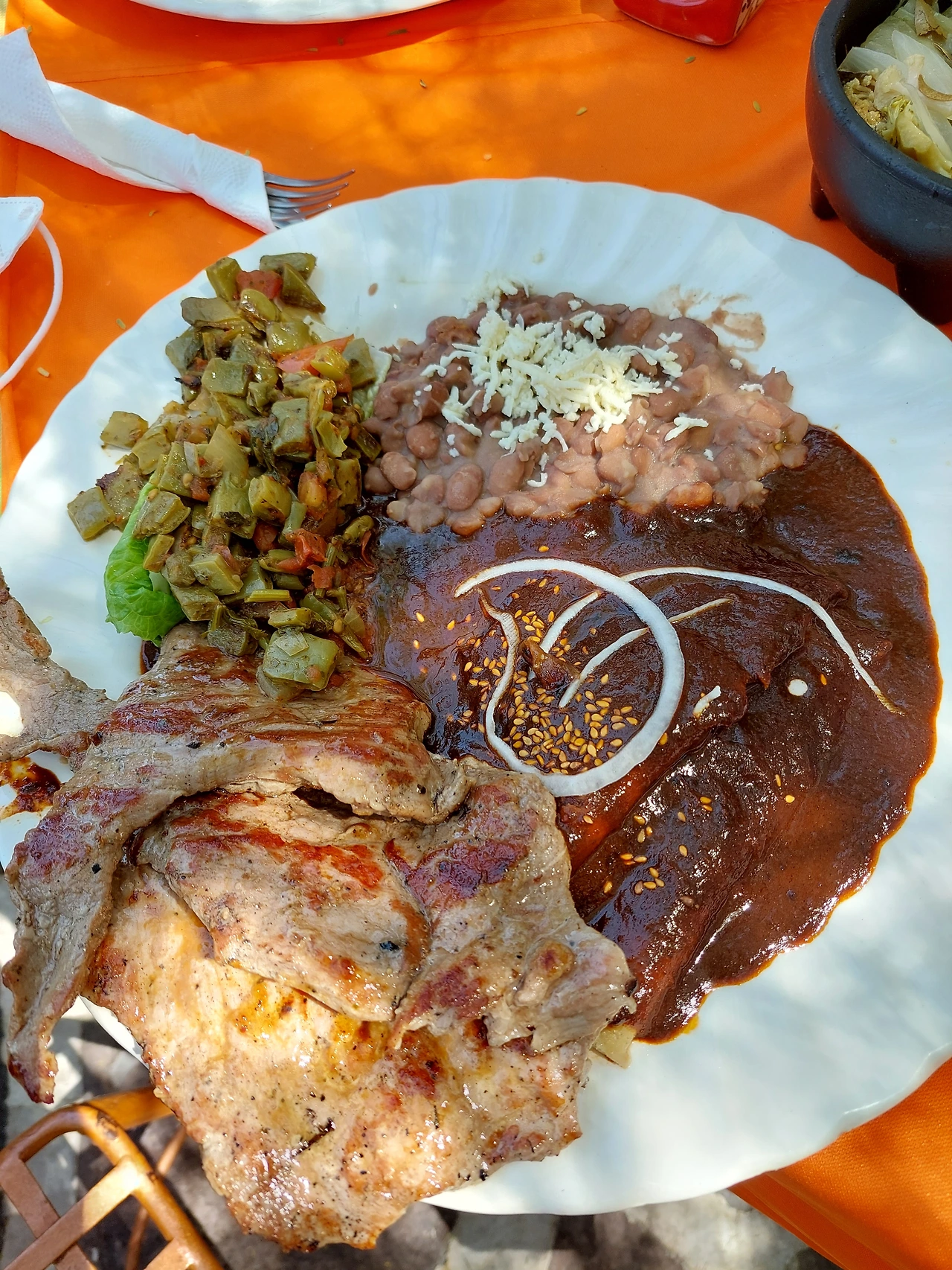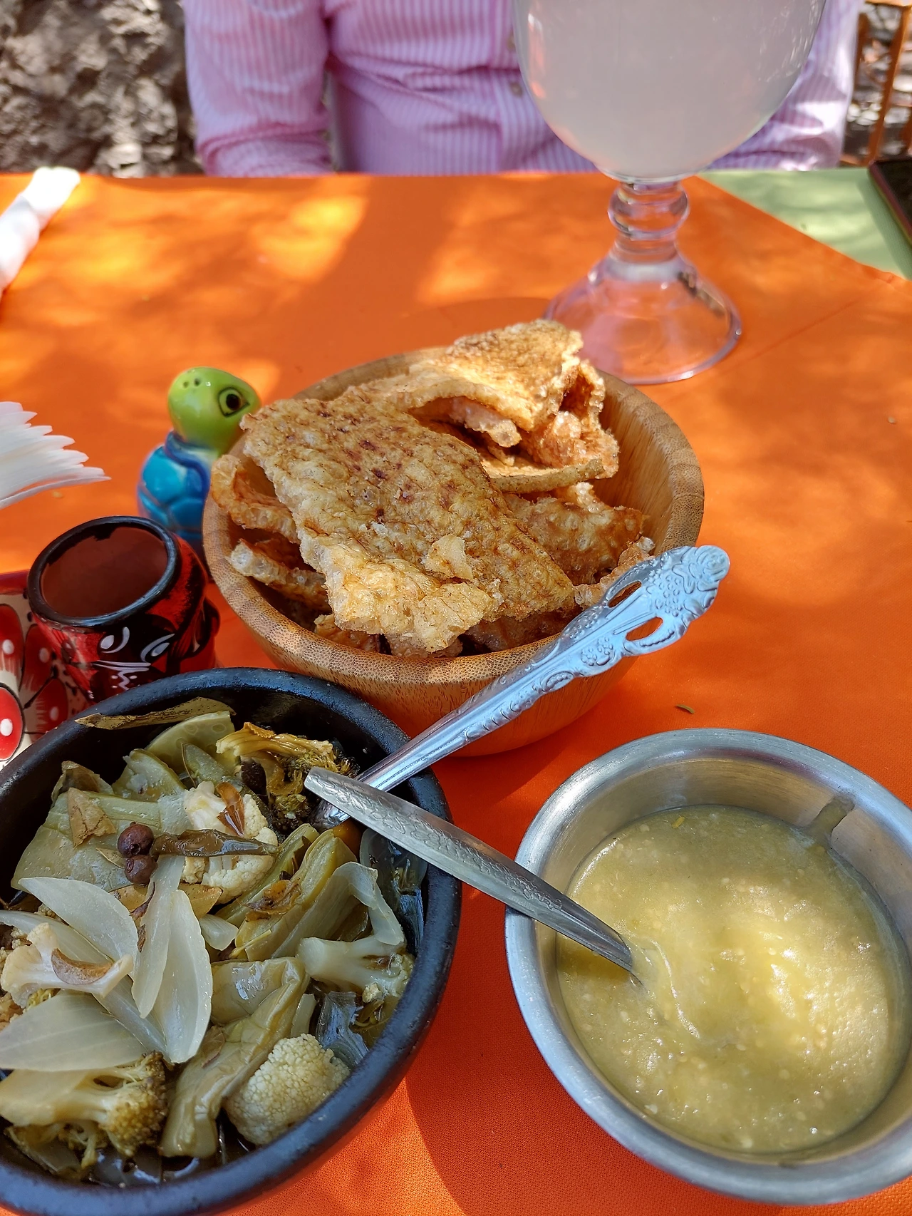 아래 사진의 왼쪽 윗부분에 초록 초록한 것이 선인장에 양념을 묻혀서 구운 건데 정말 건강한 맛이다. 역시 인간은 무슨 재료든 뭐든 다 양념을 쳐서 먹는구나 싶다.