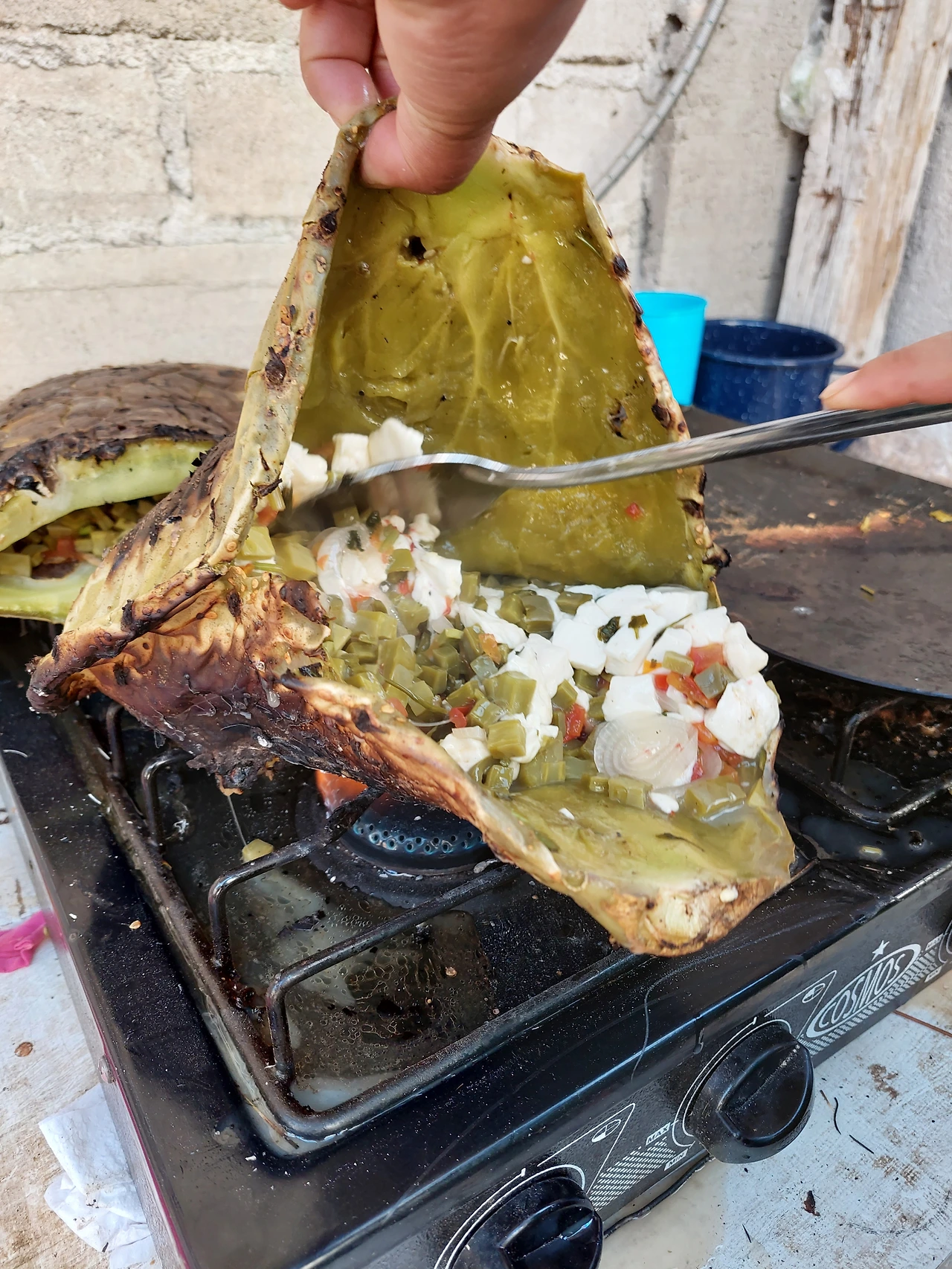 길거리 지나가다가 선인장 안에 선인장을 요리하는 것을 봤다.