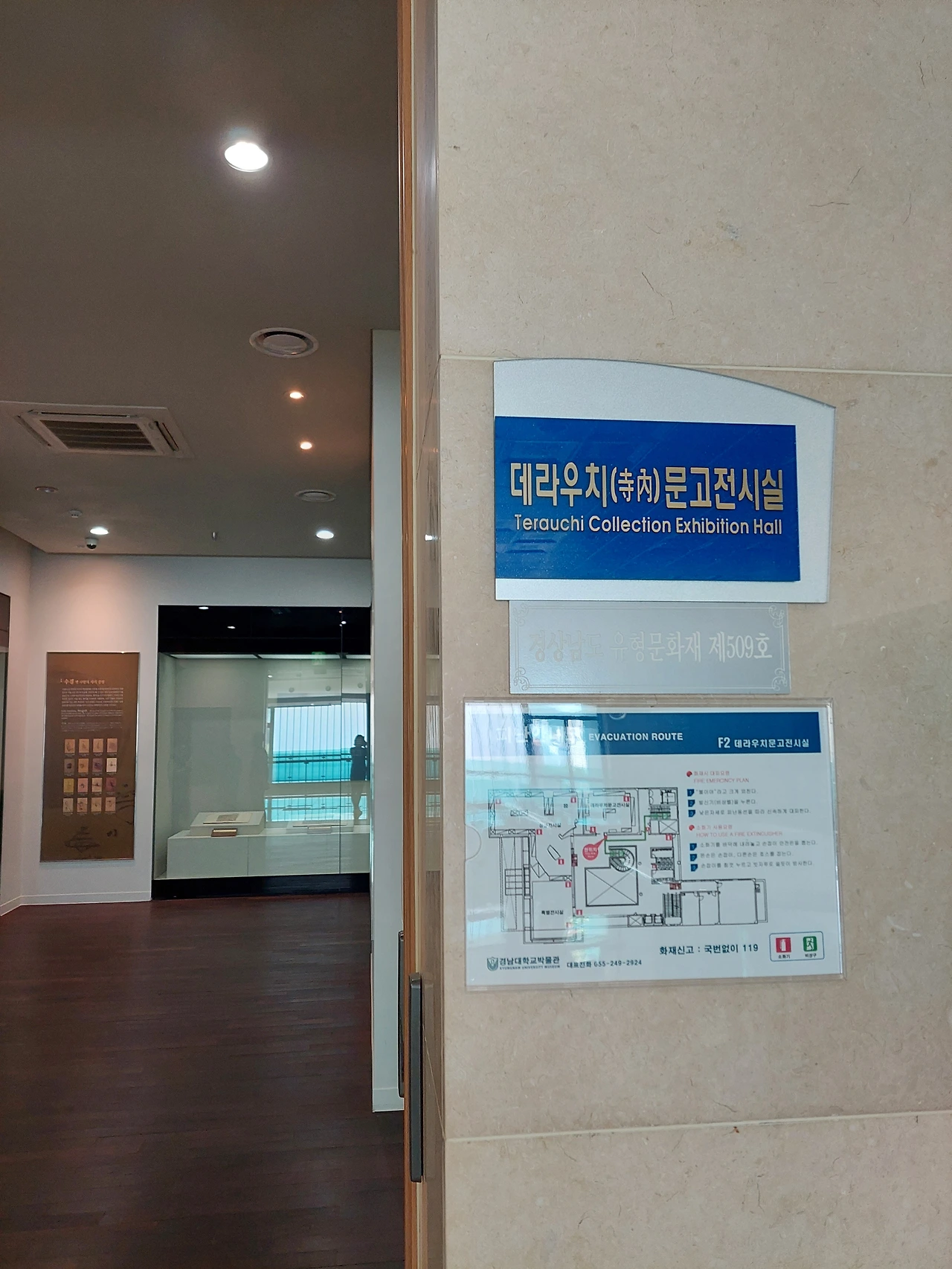 경남대학교 박물관에는 상설전시실, 데라우치문고 전시실 그리고 기능유물특별전시실이 있다.