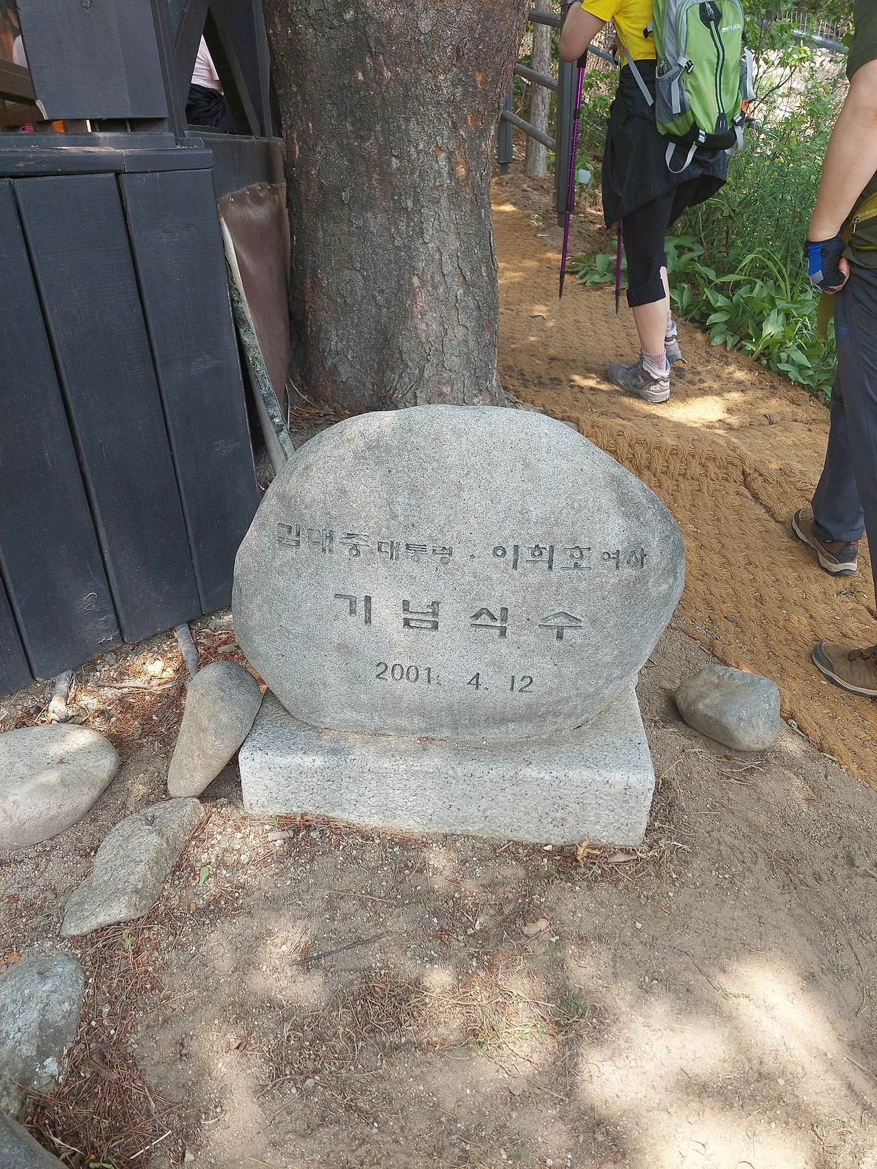 이곳도 군사지역이었는데 이렇게 등산길로 변했다. 걷다 보니 1971년 11월 19일에 만들었다고 써 둔 글도 보이네. 김대중 대통령의 기념식수도 보였다