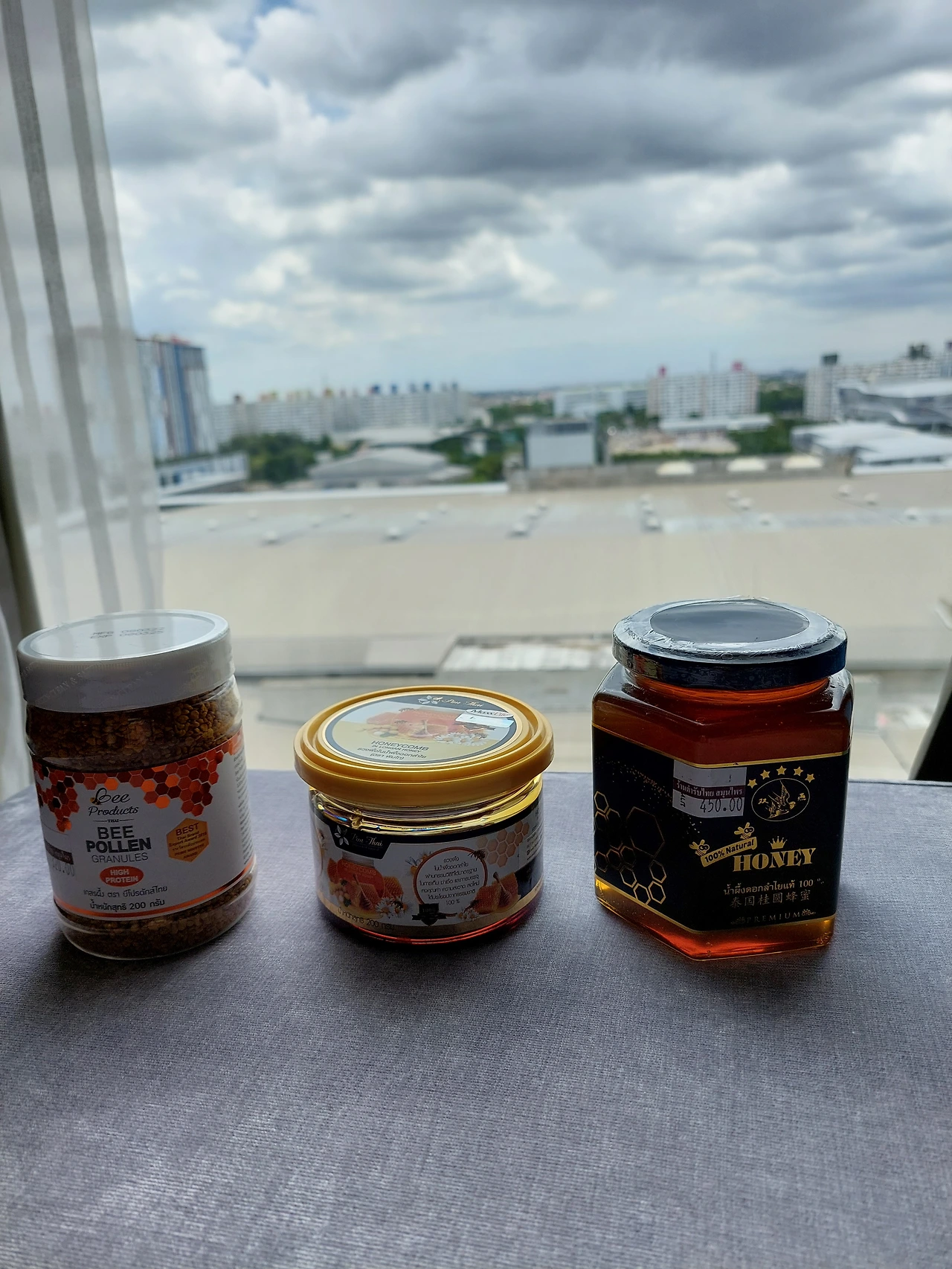출장 가기 직전에 아빠가 말씀하신 꿀하고 화분 그리고 태국에서 유명하다는 달리 치약과 땅콩, 바나나 말린 것 그리고 비누도 샀다