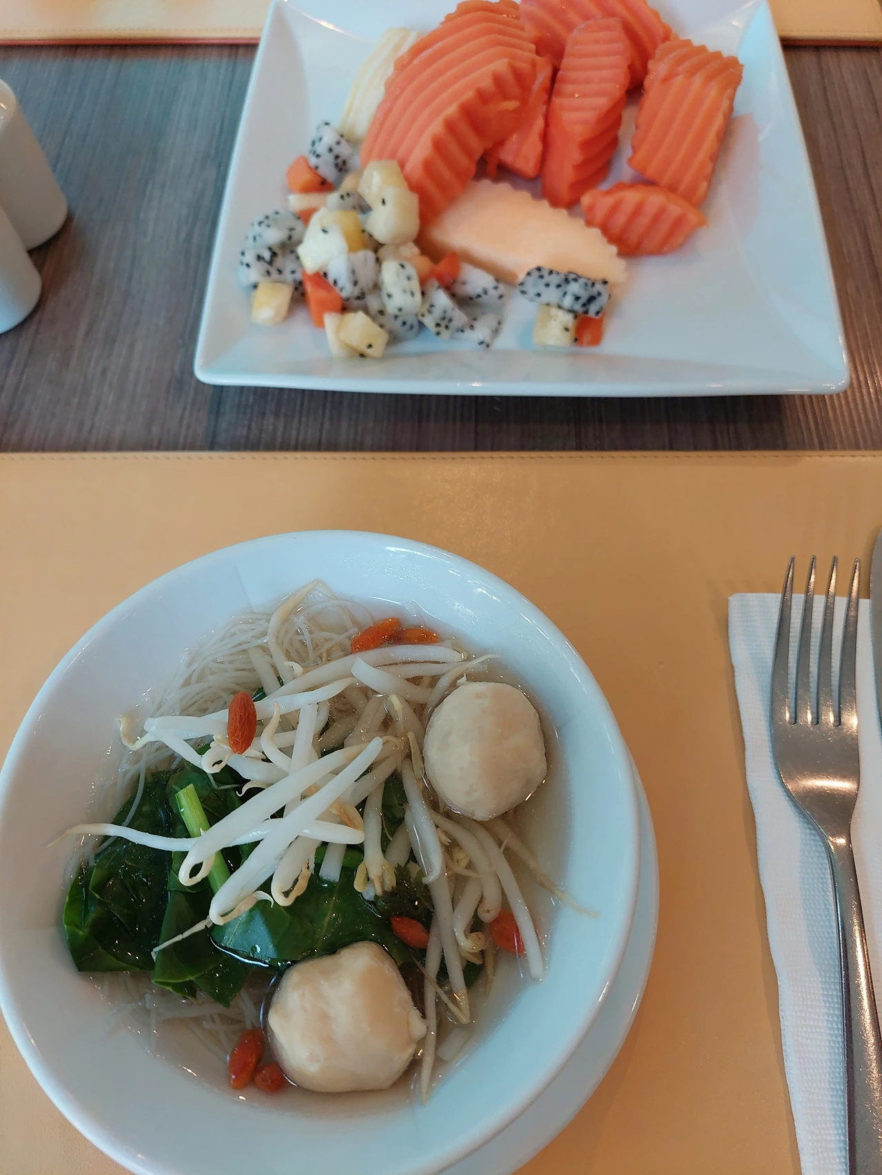 태국 날씨는 매우 맑음이다. 사람이 없는 가장 구석자리에 자리를 잡아서 그리웠던 파파야부터 두 접시 먹었다