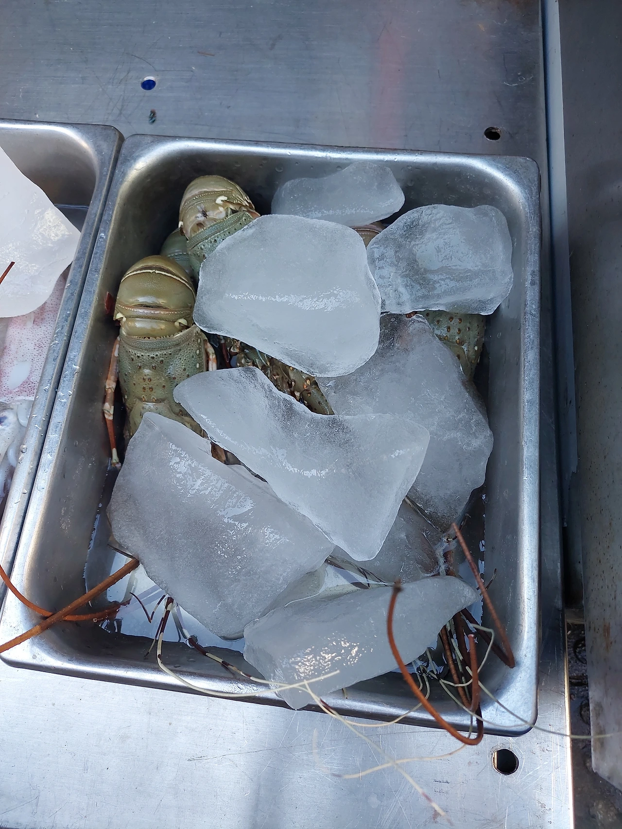 방글라데시는 공용 스푼으로 음식을 덜어서 손으로 먹는다. 랍스타가 얼음 밑에 깔려있구나