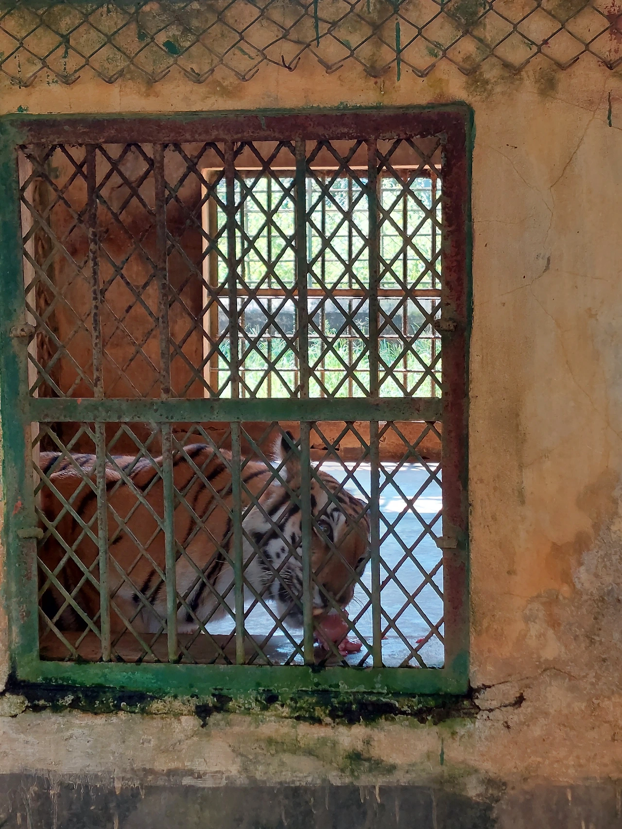 생고기를 뜯어먹는 호랑이와 낮잠을 늘어지게 자는 사자다