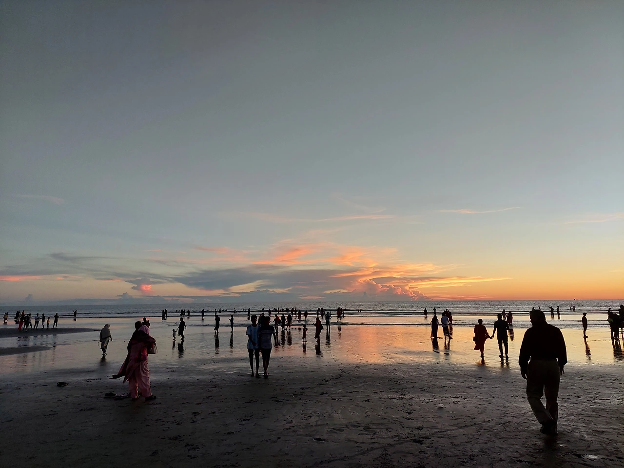 무슬림들은 옷을 입고 바다에 들어가기 때문에 나도 거리낌 없이 바닷물 속에 들어갔다. 살다 보니 방글라데시에서 해 지는 모습도 보는구나