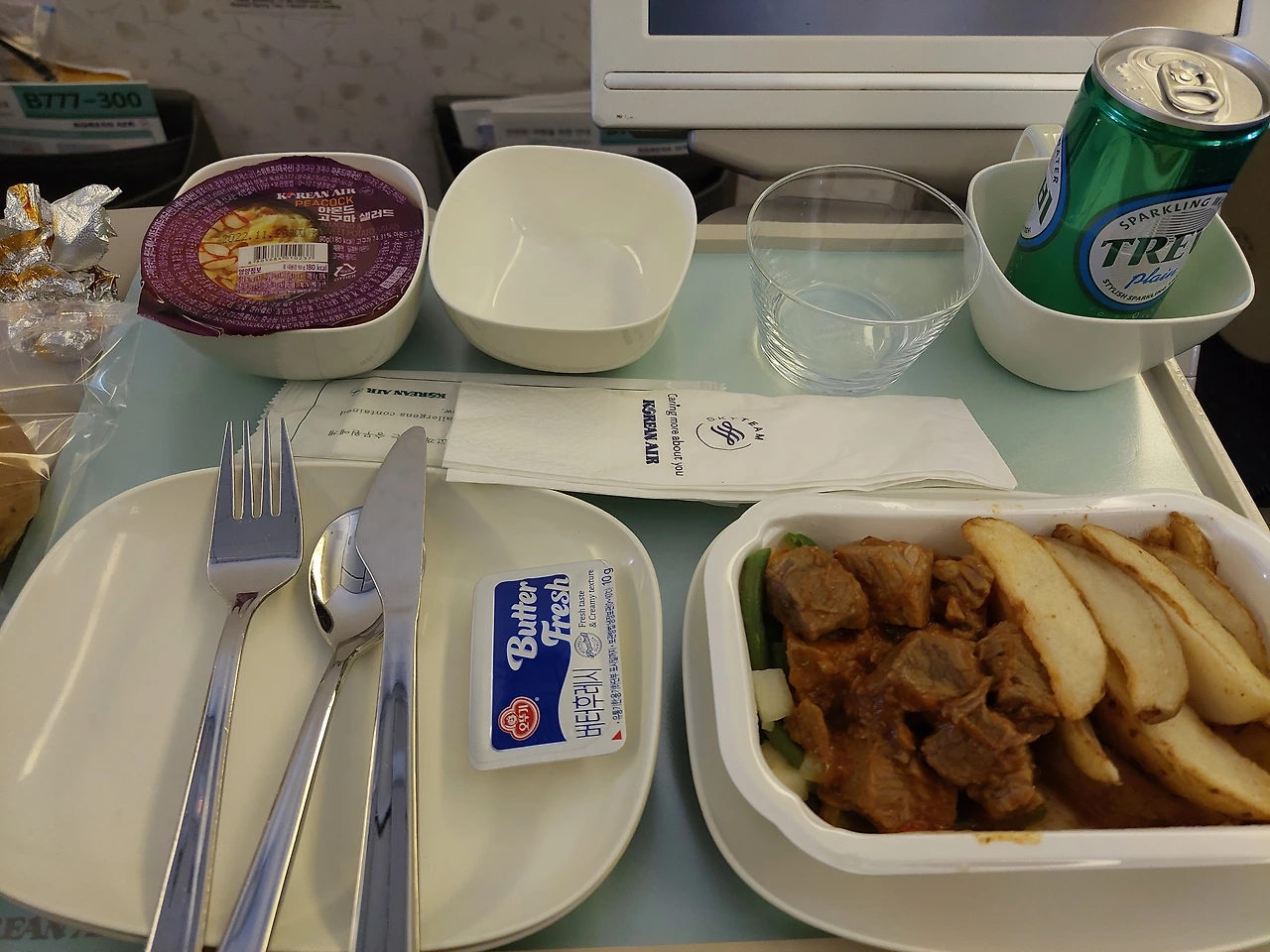 인도네시아까지 6시간 걸린다. 식사는 소고기를 골랐다
