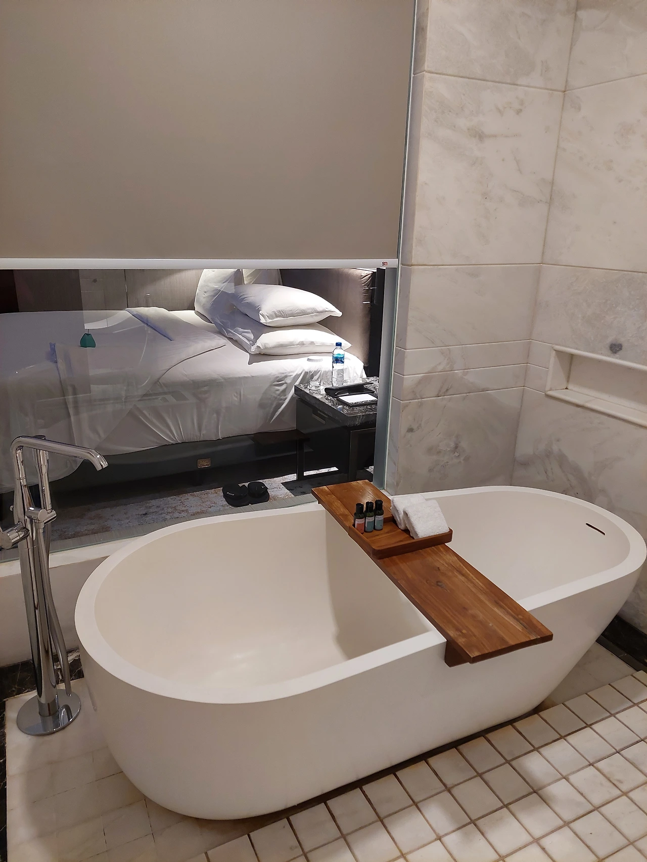 창밖 뷰가 멋지다. 수영장도 있는데 수영복을 안 가져왔다. 난 그냥 욕조에서 뜨뜻하게 반신욕 하는 게 제일 좋다