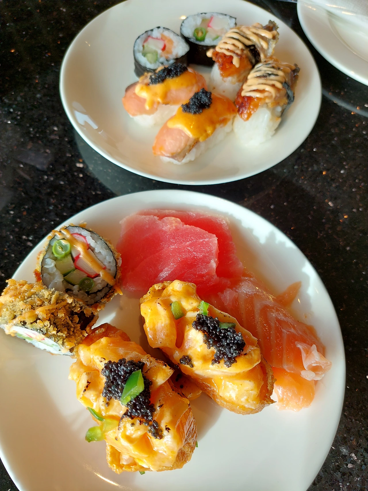 내가 좋아하는 초밥과 회가 있어서 종류별로 3개씩 먹었다