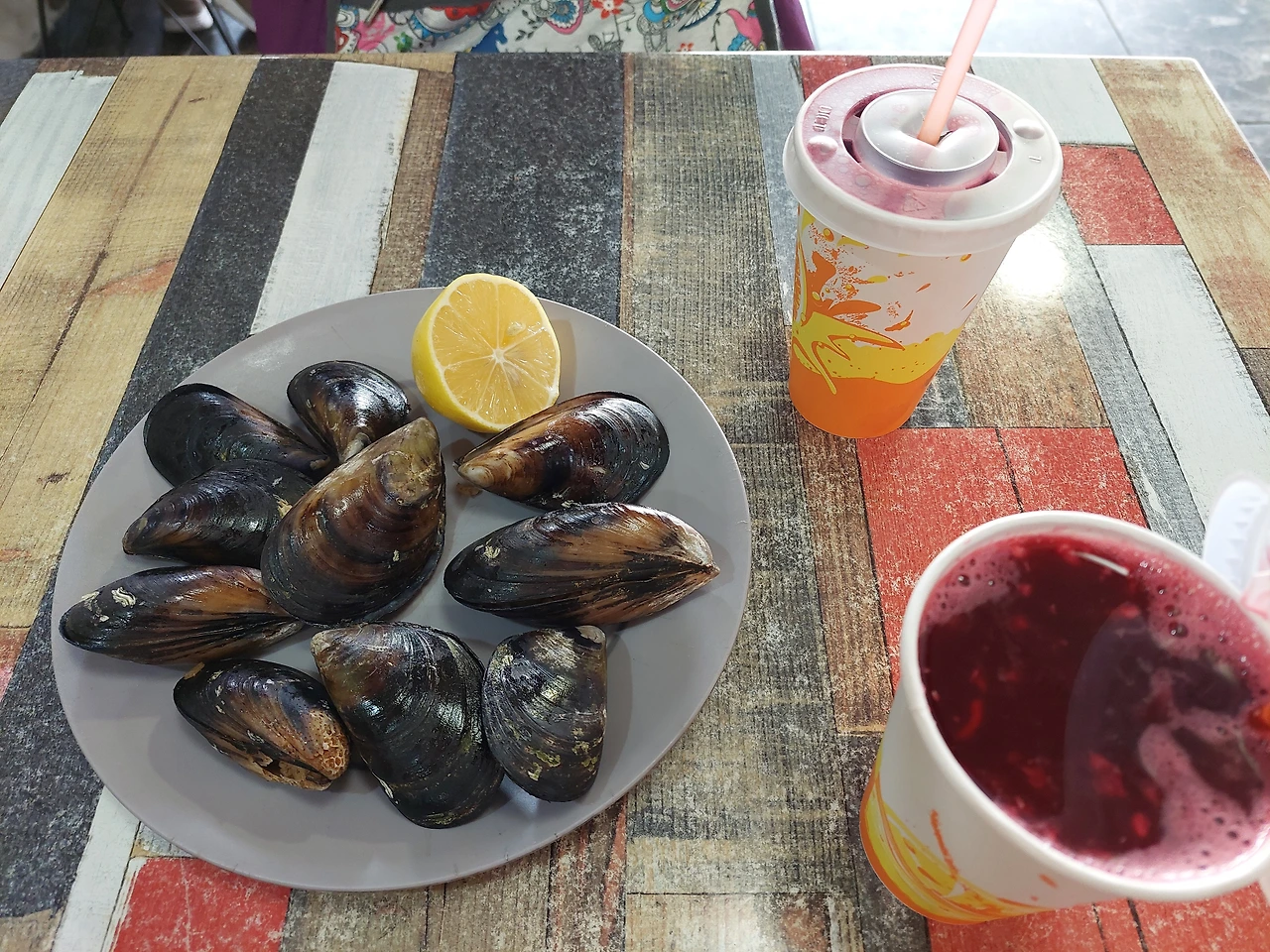 에너지 소비가 많았는지 엄마는 지나가다가 홍합밥을 발견하셨다.