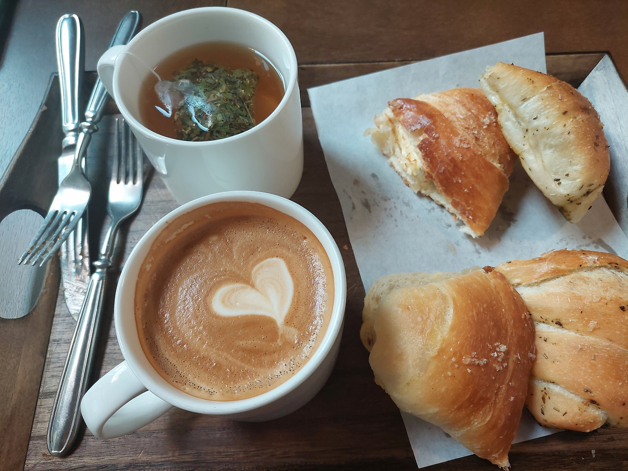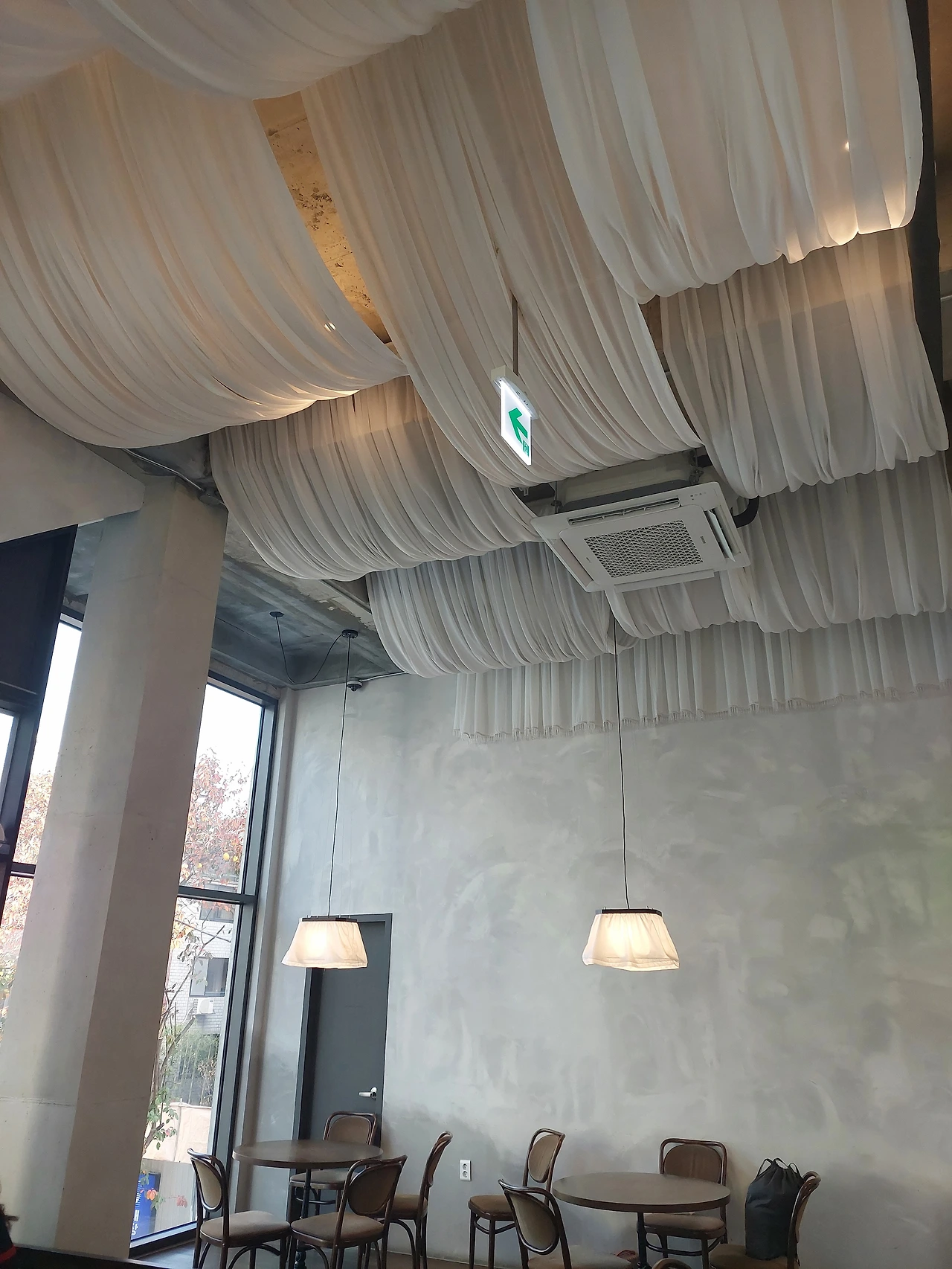 밥 먹고 커피 마시러 골목길을 돌다가 크로와상이 주렁주렁 매달린 트리가 있던 베이커리 카페로 들어갔다.
