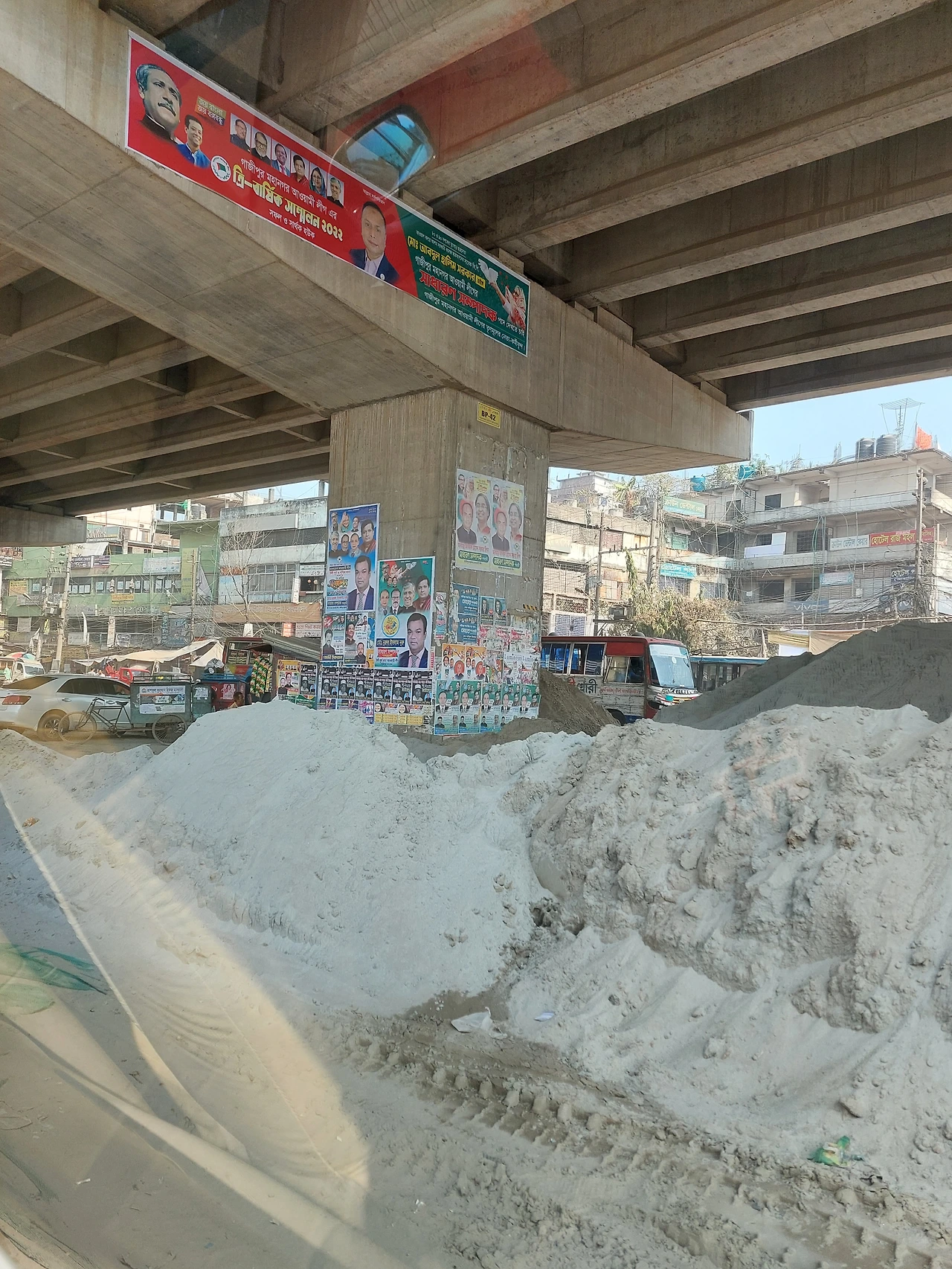 부패한 정치인들 포스터가 곳곳에 붙어 있다. 다리를 건설하는 중인지 도로가 더 난리다