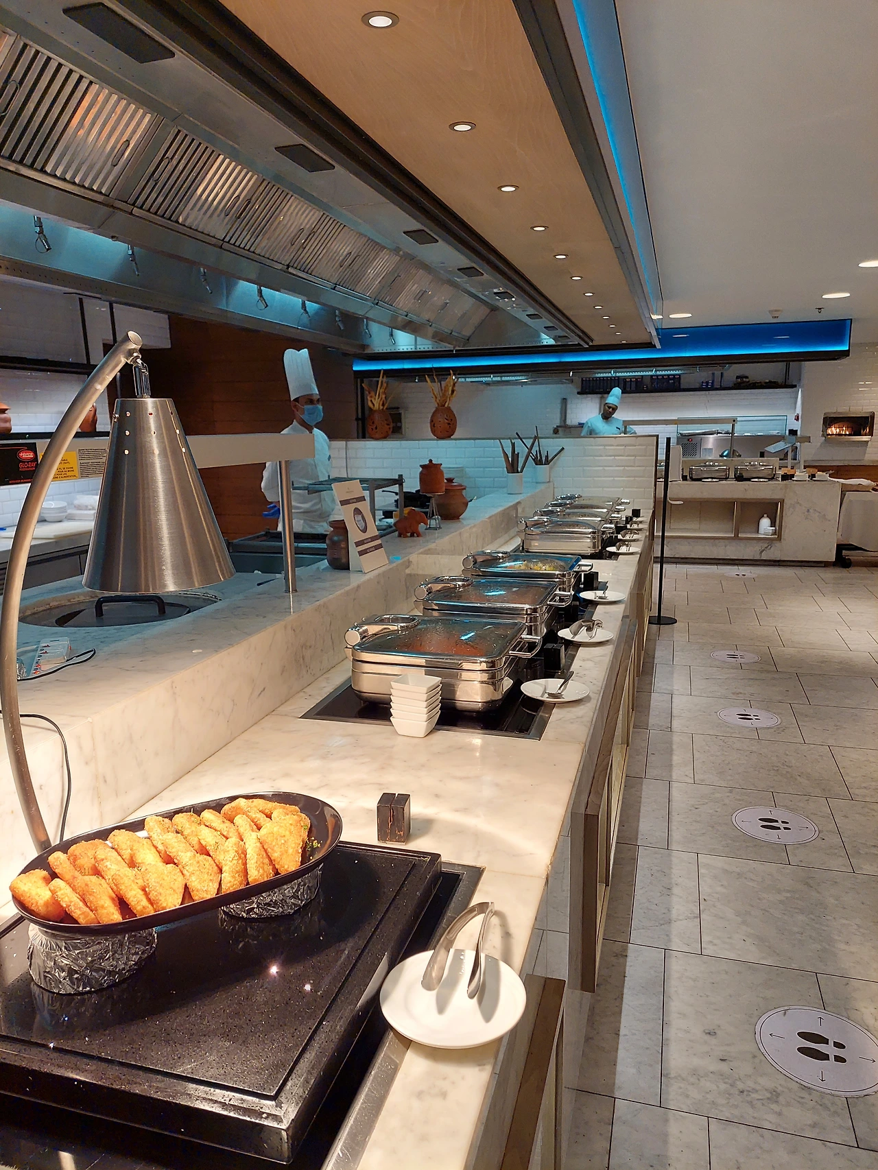 조식 뷔페에 입장하기 위해서는 이 골 문을 통과해야 한다