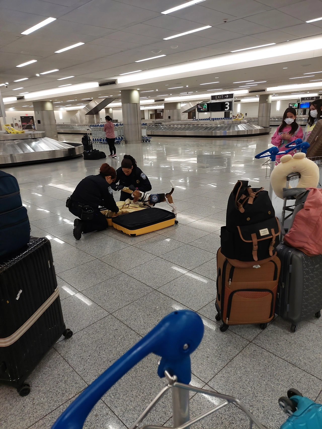 내 짐을 찾다 보니 이런 광경도 보게 됐다. 저 조그만 개가 뭘 찾은 거 같았는데 결국은 아무것도 아닌 거였다. 남의 일은 항상 재밌다. 내 일이었다면 엄청 짜증 났을 것 같다