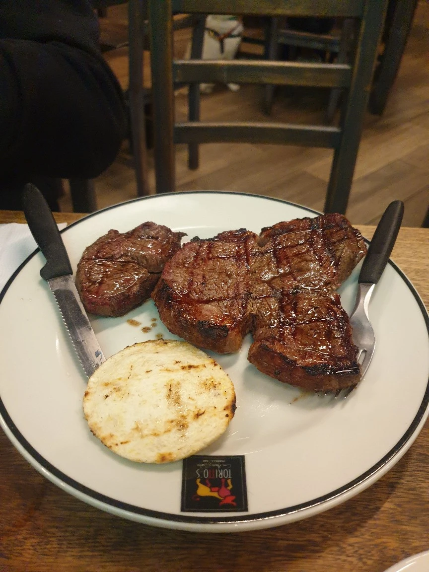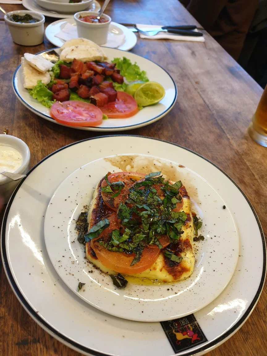구운 치즈 요리와 스테이크를 먹었다. 고기는 정말 싸고 맛있다