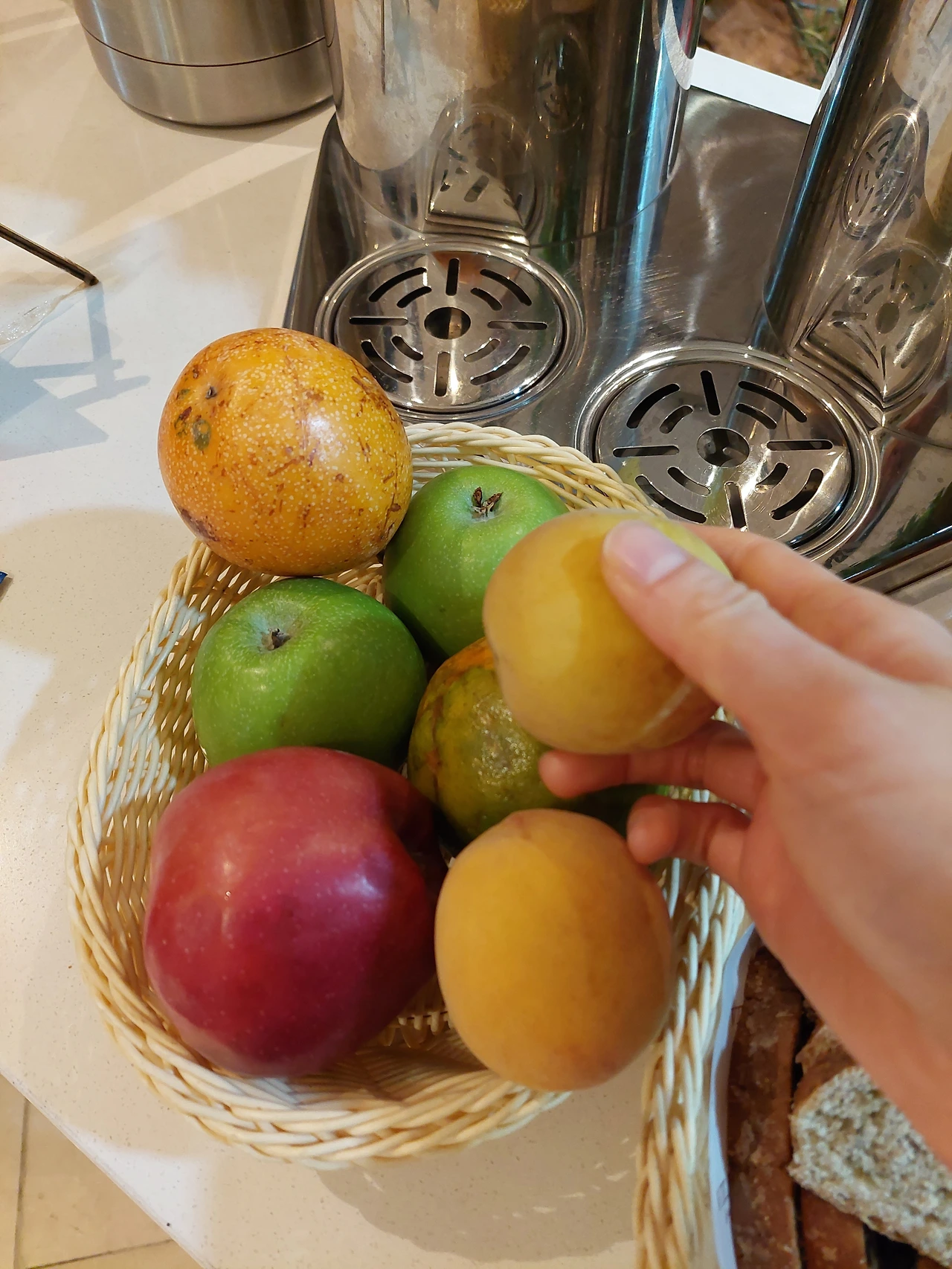 100% 오렌지 주스인데 정말 맛있다. 바구니에 과일도 있었는데 살구도 시큼하니 맛있었다. 개인적으로 신것을 정말 좋아한다