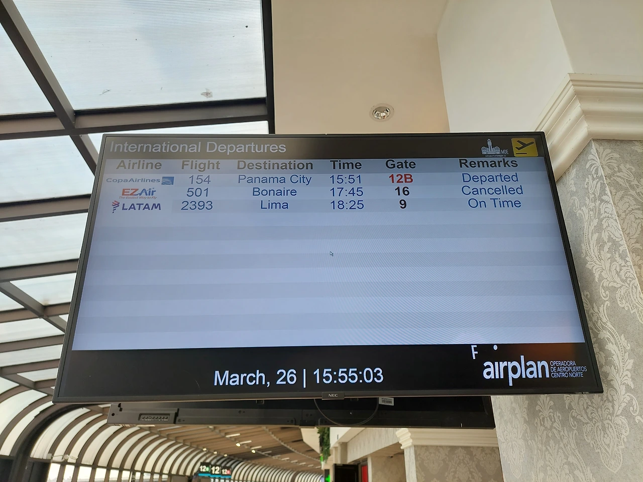 저 모칠라도 집에 2개가 있어서 더 사지는 않았다. 혹시라도 항공편을 놓칠까봐 수시로 화면을 체크했다. 리마로 가는 비행기는 변동 사항이 없었다. 바깥으로 내 비행기가 보였다