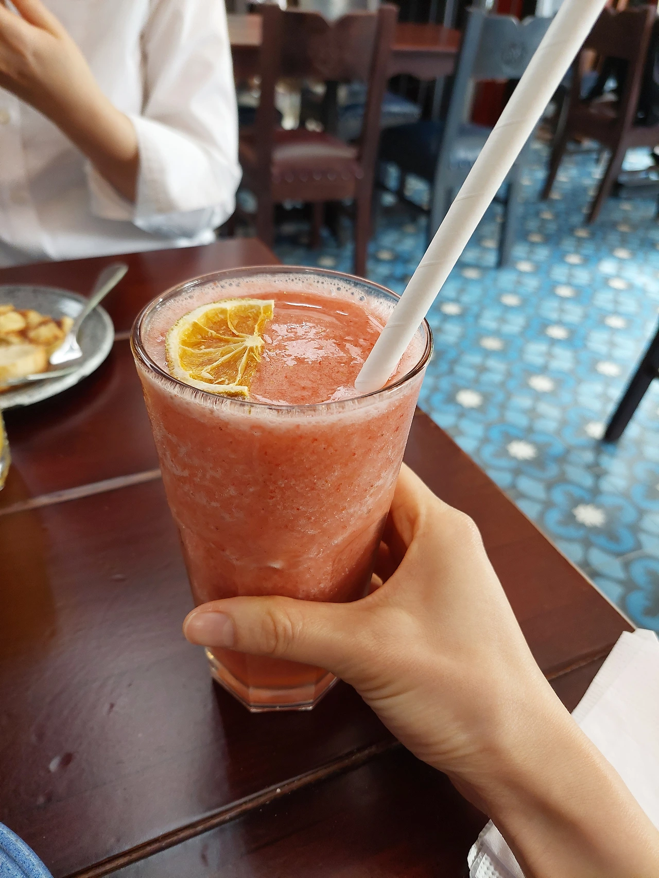 음료는 딸기 주스를 시켰는데 역시나 설탕 하나 들어가지 않고 맛있었다