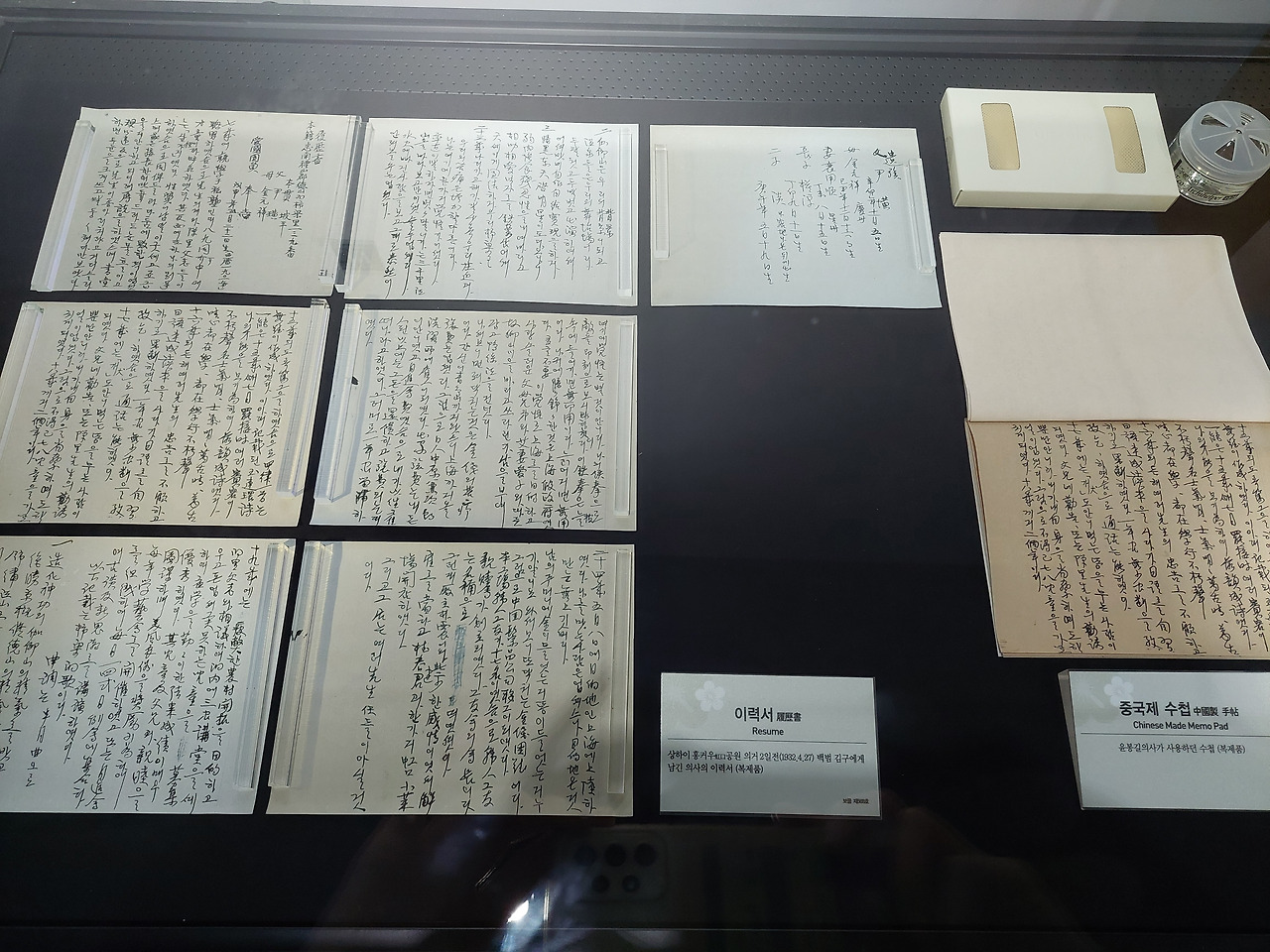 비록 복제품이긴 했지만 윤봉길 의사의 이력서를 보면서 영화 암살도 떠올랐다.