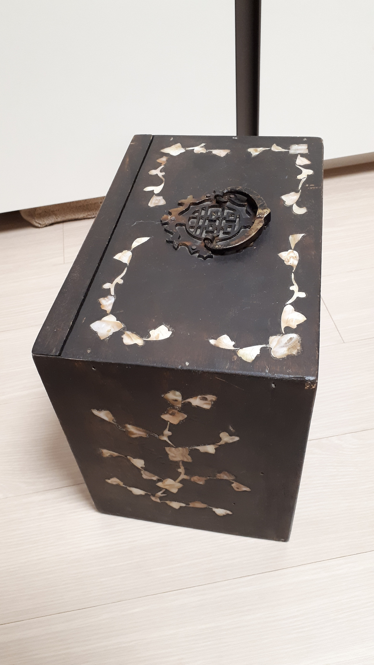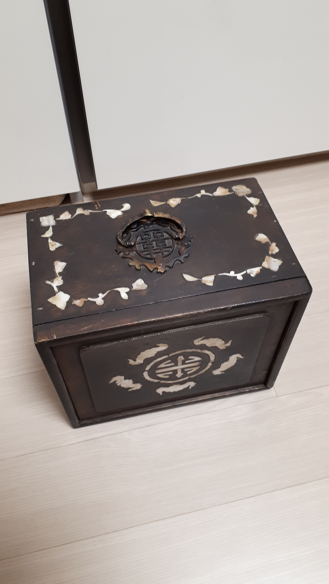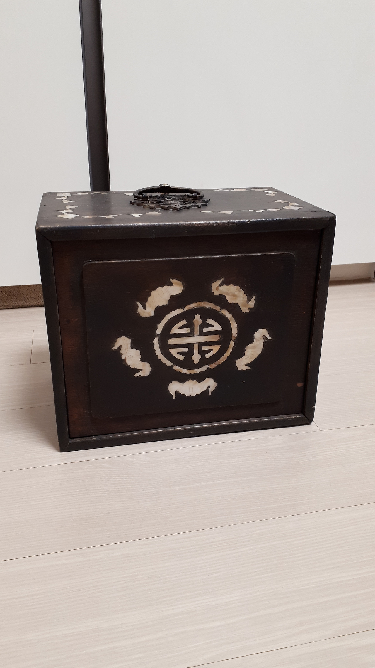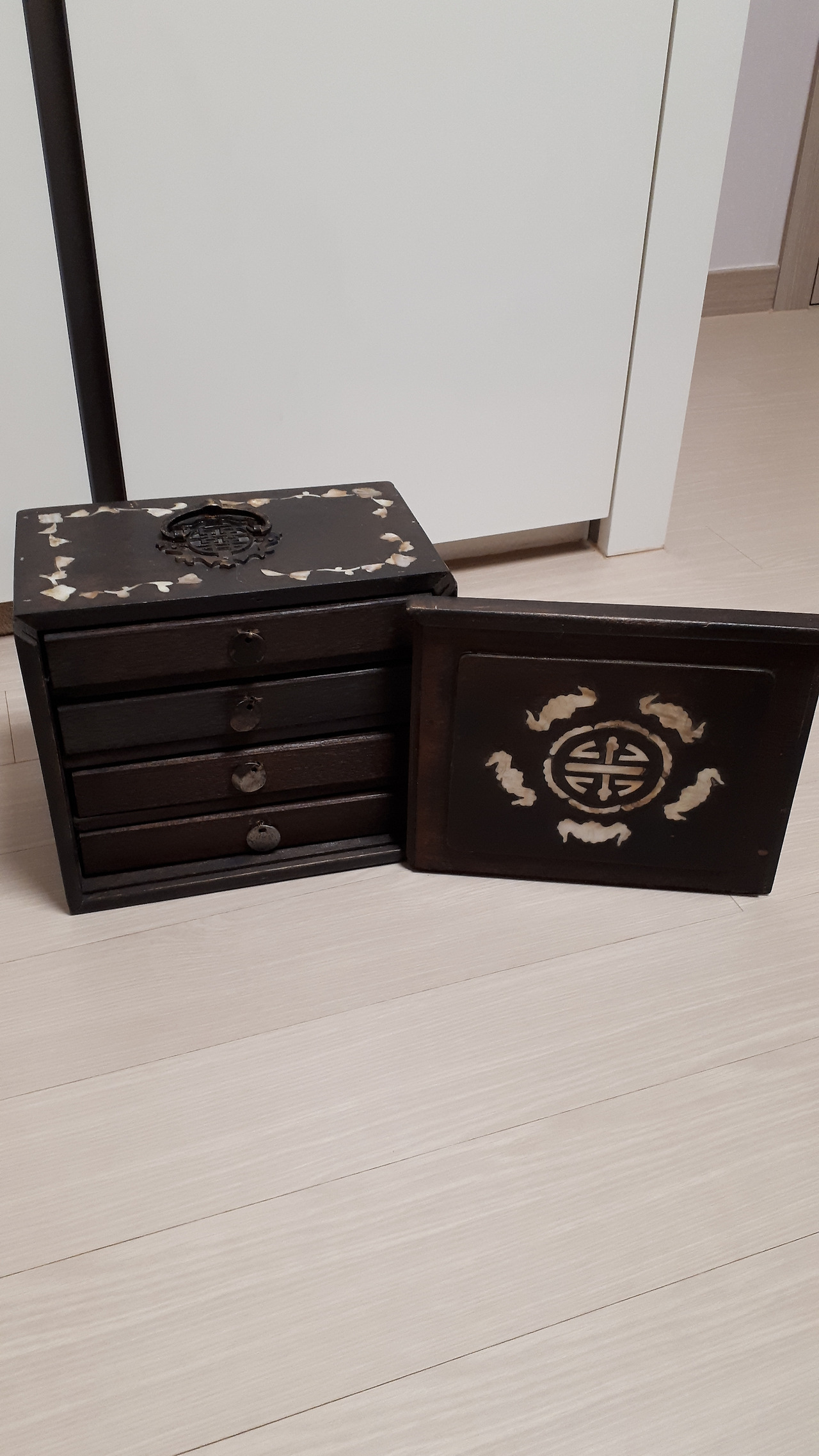 그러던 어느 날 종각에서 스페인어 수업을 마치고 북촌에 놀러 갔다가 빈티지 샵에서 자개장을 하나 발견했다. 4개의 서랍을 보며 여기다가 외화를 정리해서 넣어놔도 되겠다 싶었다. 엄청나게 먼지가 쌓여있던 이 자개장은 못질 하나 없고 이어 붙인 곳 없이 한 나무로 깎아 만든 것이었다. 이 장을 사려고 번쩍 들었는데 안에서 요란스럽게 달그닥 거리는 소리가 들렸다. 서랍 안에는 마작이 있었다.