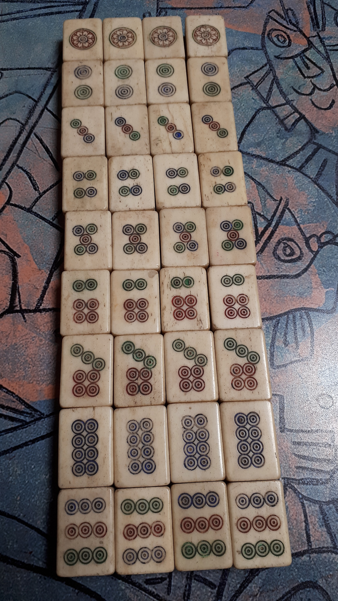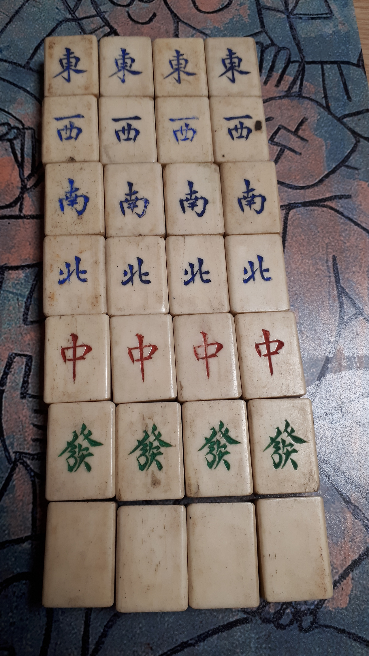 내 마작은 아래 104개에 3번째 서랍에 있던 36개와 첫 번째 서랍의 4개 즉 총 40개가 더 있어서 중국 마작이다.