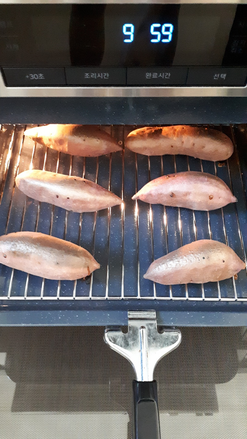 매 달 꼬박꼬박 나오는 월급으로 호박고구마 6천 원어치 사서 구워 먹으며 주말에 쉬니 좋구나.