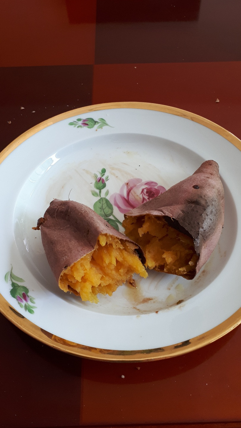 고구마 굽는 시간을 못 기다리고 치아바타에 올리브 오일 찍어 먹은 후 그 접시에 고구마도 먹었다. 접시를 한번 씻고 사진 찍을걸 그랬다