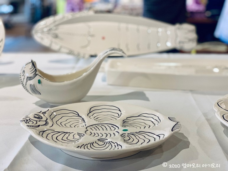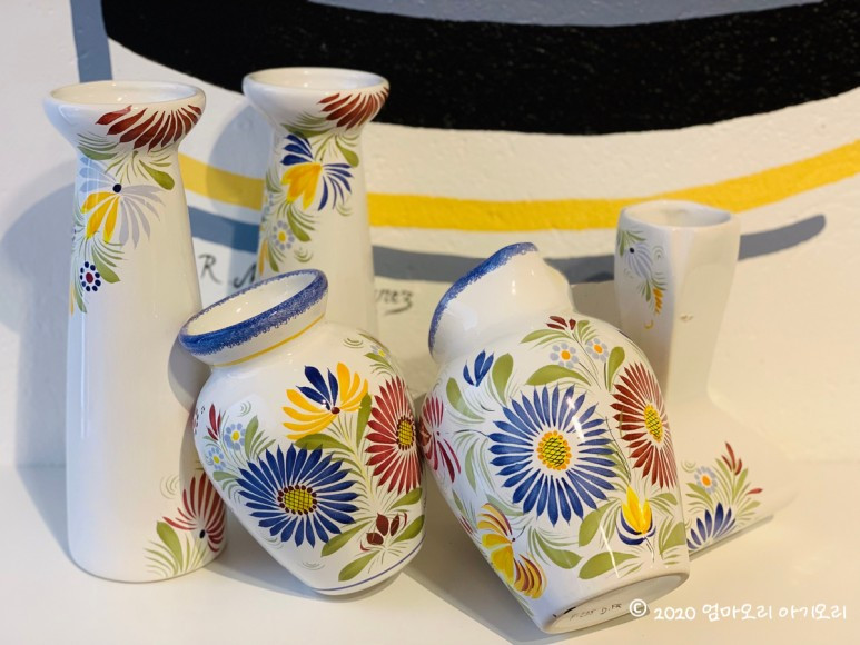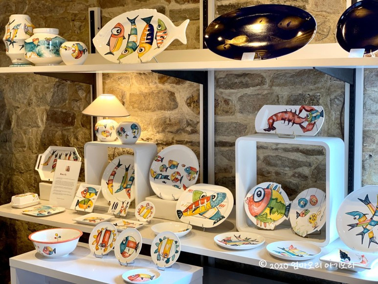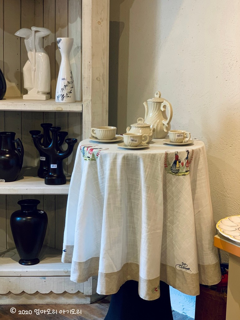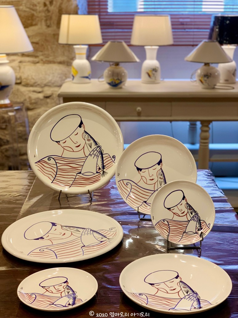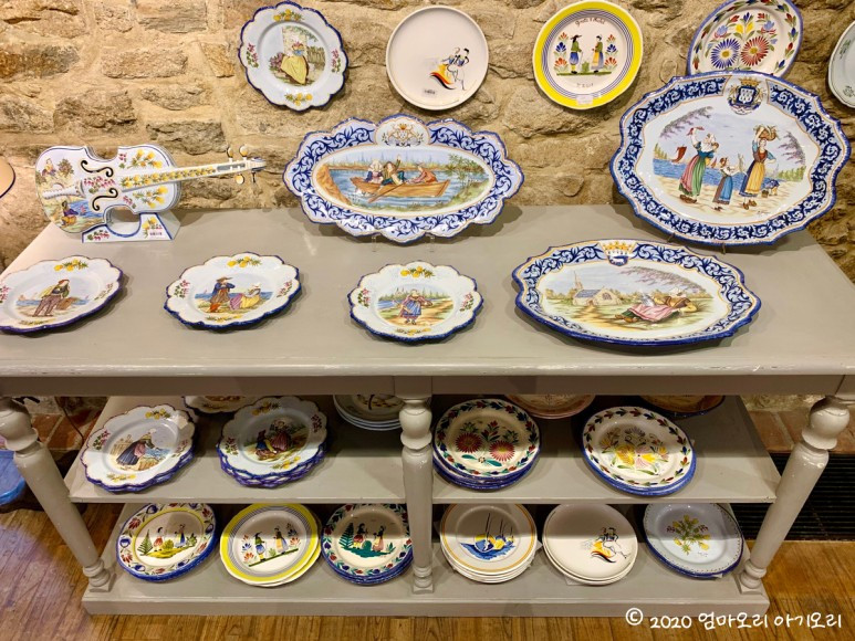 3년 전 한국에서 살 때, 가평에 있는 쁘띠프랑스에 놀러 간 적이 있다. 그곳에서 만난 캥페르의 전통 도자기를 남편이 딱 알아보고서 반가워했던 기억이 난다. 도자기 문외한인 내가 보기에, 전통 도자기 문양이 다 거기서 거기인지라... '남편이 어떻게 알아봤을까' 하고 오히려 신기해했었는데, 이번에 다시 보니 캥페르 도자기만의 뚜렷한 색채와 스타일이 보인다.