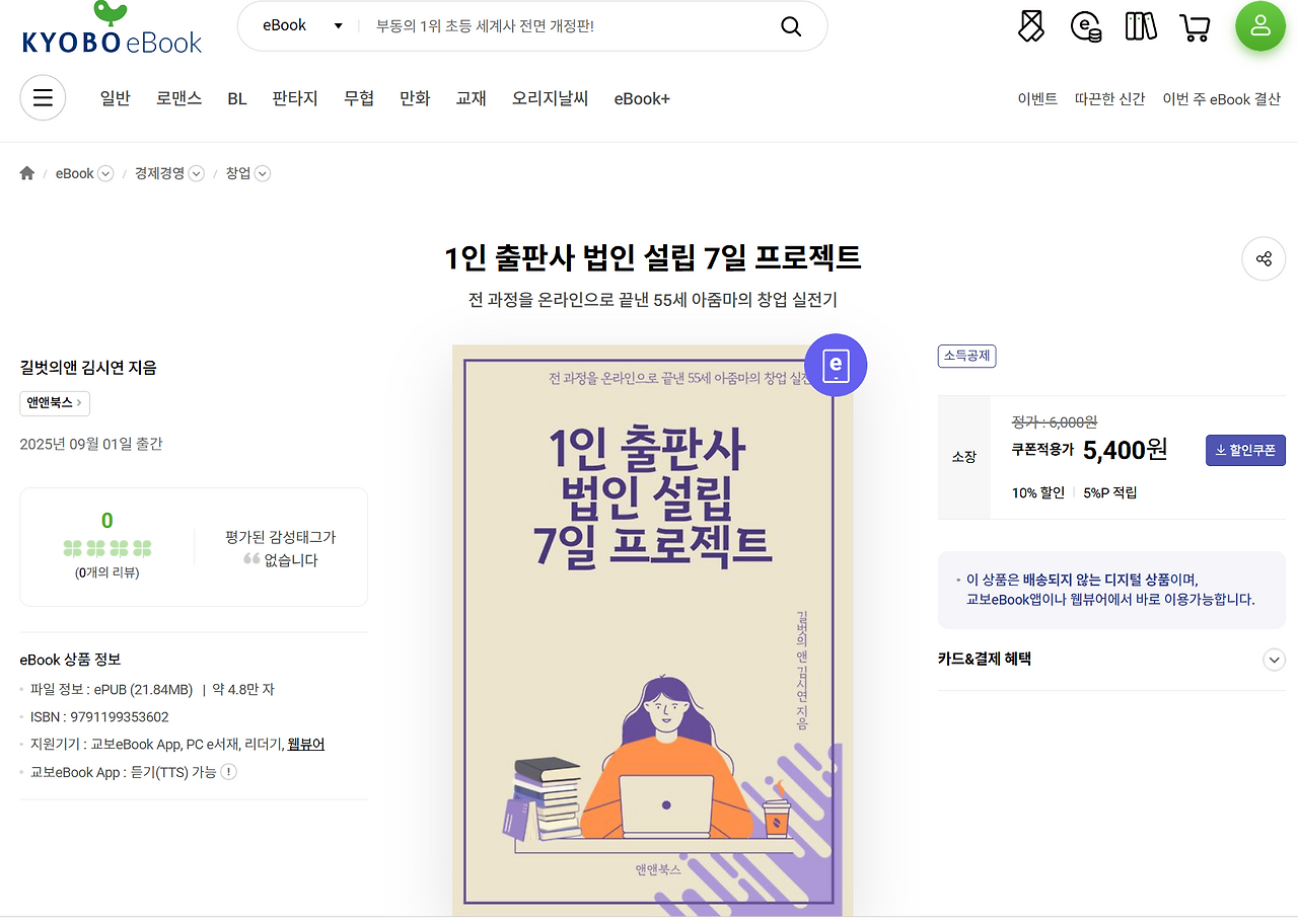 1인 출판사 법인 설립 7일 프로젝트 | 길벗의앤 김시연 | 앤앤북스 - 교보ebook