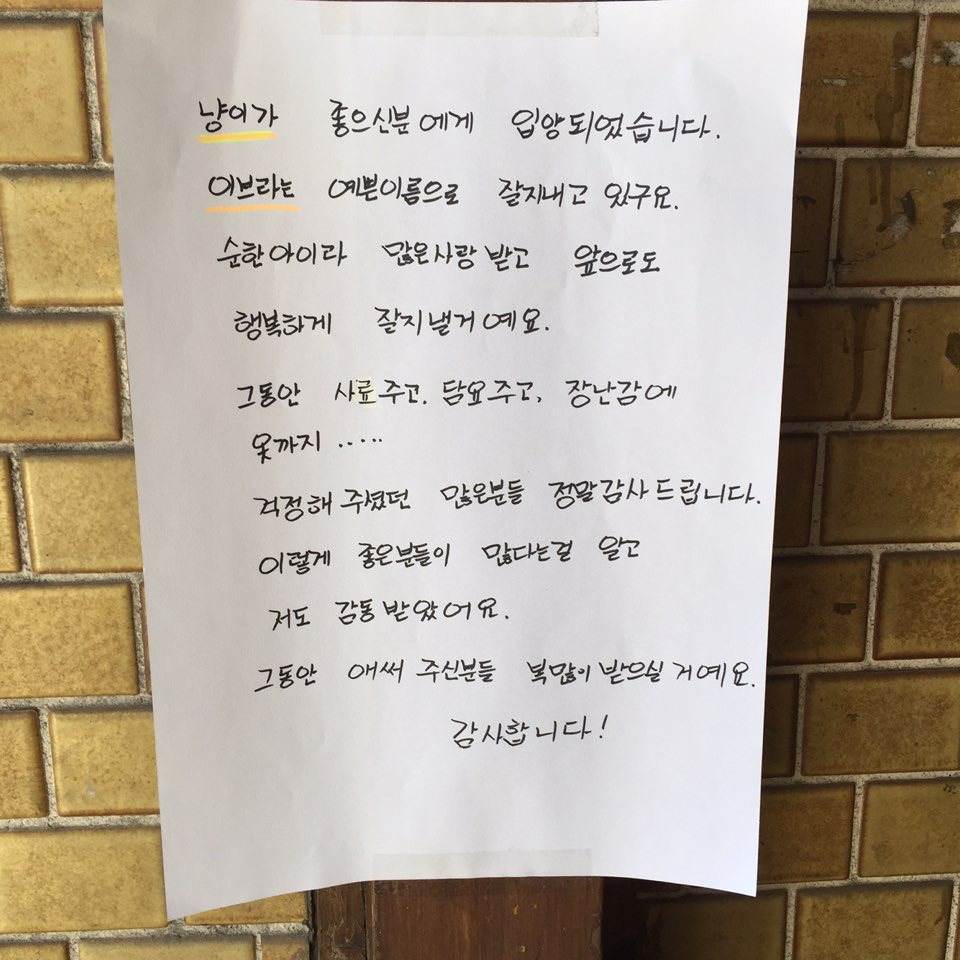 이후 노란 고양이는 크리스마스 이브에 입양되어 ‘이브’란 이름으로 살고 있다는 것을