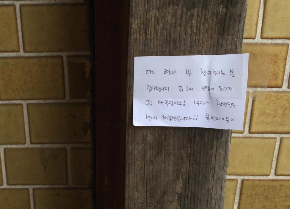고양이가 자주 나타나는 길목에 “중성화 수술 시키고 올게요” 라는 종이가 붙어있었던 적도 있다.