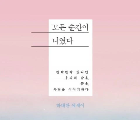 책을 읽으면서 삶에 지친 사람들을 위한 글도 많았지만, 무엇보다 책에서 다루는 가장 큰 감정은 사랑이었다. 사랑을 하는 사람이라면, 자신이 사랑하는 사람이 얼마나 예쁘고 사랑스러운지 자신의 마음에 있는 감정을 다 못 꺼내 아쉬운 순간들이 있을 것이다. 그럴 때 이 책에 있는 글을 읽으면 내가 그 사람에게 해주고 싶은 말이라는 생각이 들 것 같다.