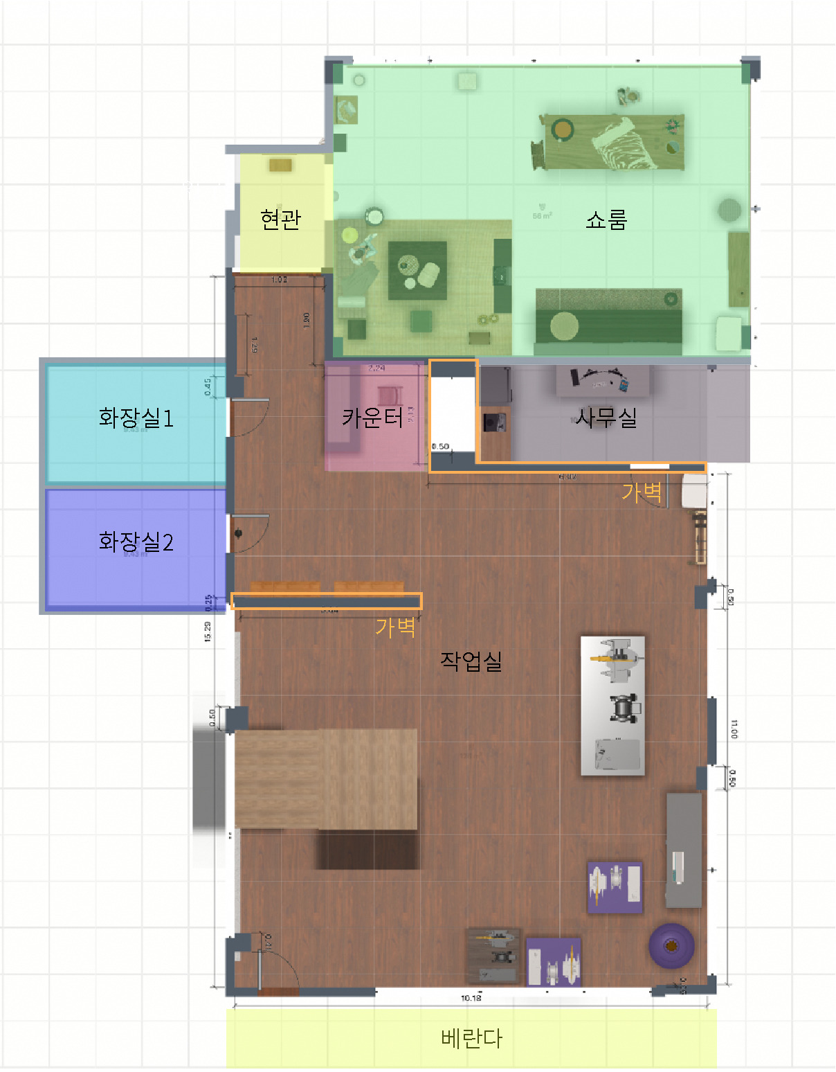 1) 현관과 작업실을 분리하는 가벽