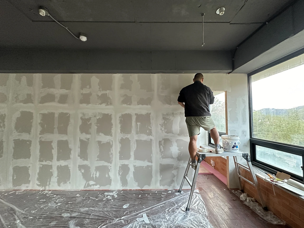 2) 작업실 도색 준비: 벽과 천장 편